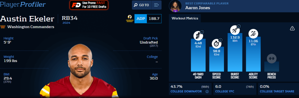 There is a high likelihood that Ekeler will be on this team in 2025, but a strong camp performance from one of Washington’s young backs (Croskey-Merritt or 2023 sixth-rounder Chris Rodriguez Jr.) could lead the Commanders to cut the veteran loose in favor of more explosive options.