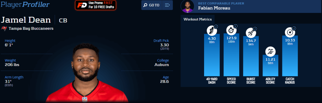 Dean has become expendable and could free up $12.8 million in cap space with a paltry $2.2 million dead cap hit if he is cut. He’s a useful player, but his talent may not outweigh his cap hit now that the Buccaneers have a bunch of young corners in the wings.