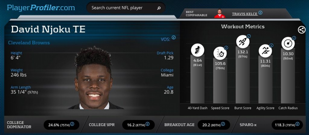David Njoku is an athletic freak, and has the highest upside of any tight end in this class. With a 132.1 (97th-percentile) Burst Score, 11.31 (80th-percentile) Agility Score, 118.3 (79th-percentile) SPARQ-x Score, and 10.3 (92nd-percentile) Catch Radius, there is nothing not to like about Njoku, and while Cleveland may not be the most desirable landing spot on paper, it could end up being a perfect match.