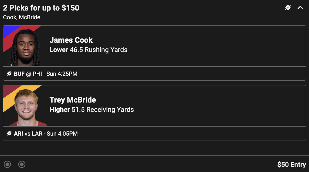Cook will be facing an Eagles defense that ranks No. 2 in the NFL in Run Stop Win Rate in a game script that is uncertain but likely not super-favorable from the get-go. The Bills are three-point underdogs on the road against the Eagles. There are several routes to Cook failing to meet this projection, including a lack of carries and a lack of efficiency.