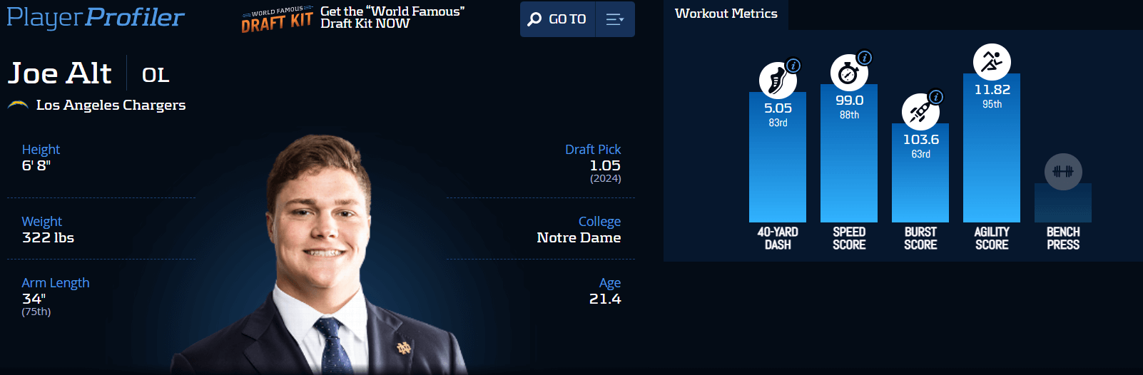 There was little doubt that Alt’s play style would translate to the NFL as he was billed as the safest offensive line prospect this season. Alt has met expectations this year and is proving to be a cornerstone on the Chargers offensive line.