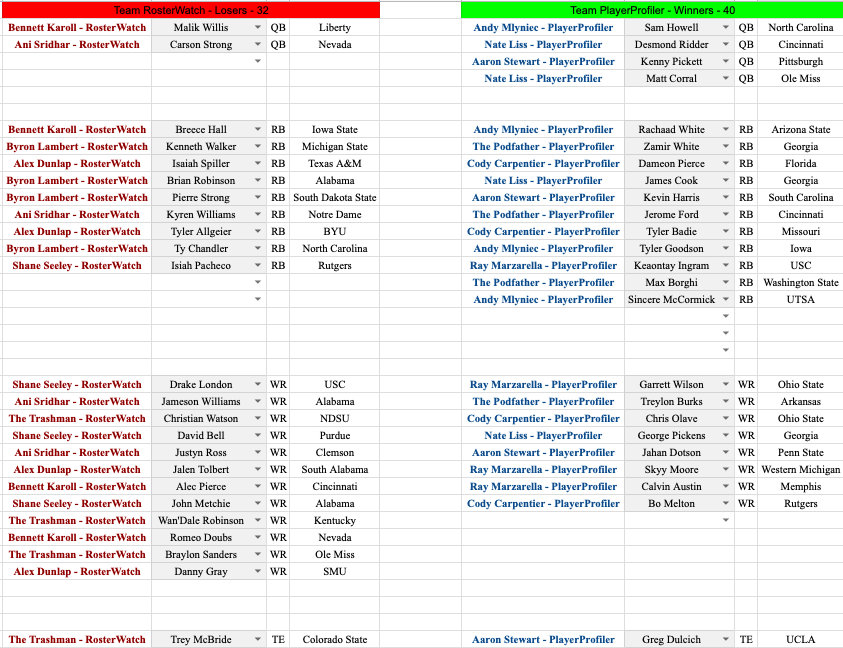 If you couldn’t get enough of the PlayerProfiler vs RosterWatch rivalry, we’re back with the second installment in the Summer of Collaboration series of fantasy football mock drafts with RosterWatch.