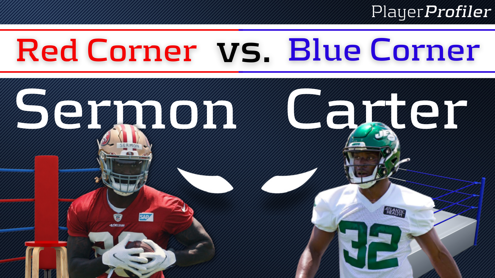 Introducing first, in the RED CORNER: hailing from the San Francisco 49ers, standing 6-0, and weighing in at 215-pounds: “THE MINISTER“ TREY SERMON.