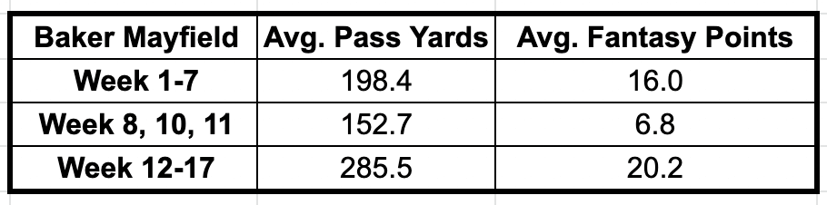 The run-heavy game plan boosted Baker Mayfield‘s efficiency from 2019 to 2020, evidenced by a 7.3 (No. 12) Adjusted Yards per Attempt average in 2020, up from 5.8 (No. 29) in 2019. Although it’s possibly a coincidence or randomness, Mayfield’s productivity and efficiency improved shortly after Beckham’s injury. He either grasped the offense better or, maybe, didn’t feel the need to force the ball to one player.
