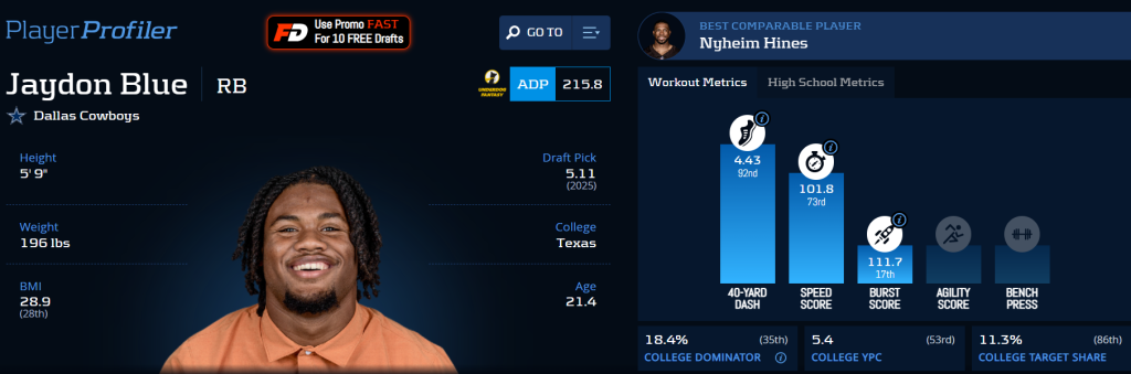 The Cowboys have been doing their backfield shopping at the thrift store as of late. In 2024, their plan was Ezekiel Elliott (who was clearly dusty and did little) and Rico Dowdle (who stepped up admirably). They then let Dowdle walk during free agency to replace him with Javonte Williams, as well as Miles Sanders, on cheap contracts. Finally, in the NFL Draft, the Cowboys drafted Jaydon Blue in the fifth round, creating a camp battle between the three of them.