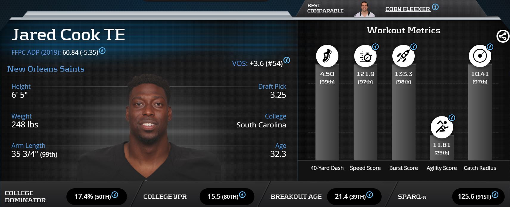 After a 2018 season for the ages, 32-year-old Jared Cook will take his talents to New Orleans. A place where productivity at tight end hasn’t been a reality since the halcyon days of Jimmy Graham. Cook enjoyed a career year with Derek Carr in the midst of Amari Cooper’s departure and general dysfunction. He now joins a team poised to make one or two serious runs at a title with Drew Brees still under center. Though Mark Ingram, Alvin Kamara and a truly elite defense did much of the heavy lifting in New Orleans last year. However, even as the Saints attempted a mere 33.7 (No. 29) pass plays per game last year, Brees had 93 red zone attempts. Guess who had a 26.3-percent red zone target share and an insane 32-percent end zone target share in 2018? None other than The Cook, baby.