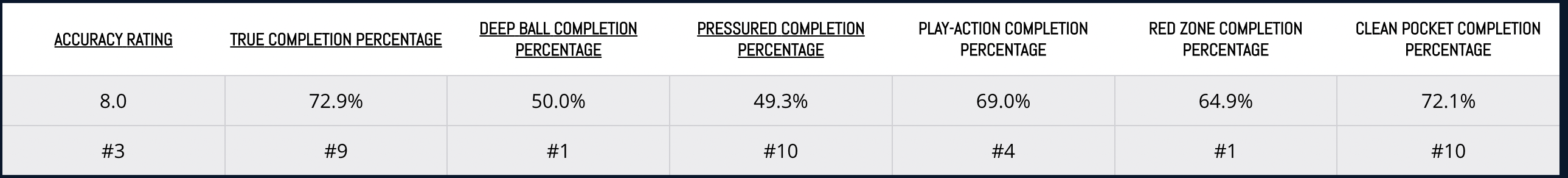 Based on last year’s statistics, the model loves Miami. As mentioned in my previous article, it projects that they will make the playoffs this year. In this game they go up against Mac Jones and the Patriots in New England. Surprisingly, Tua Tagovailoa not only was third in accuracy rating last year, but he was also first in deep ball completion percentage and first in red zone completion percentage. With his improved weapons on offense, look for Miami to come out swinging against the Patriots.