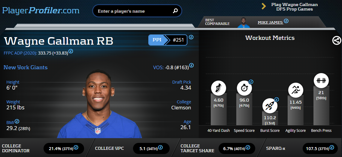 Wayne Gallman‘s fantasy value was all but dead after the signing of Devonta Freeman to operate as Saquon Barkley‘s replacement. A stunning indictment following an offseason in which the coaching staff praised Gallman as having workhorse potential in the event Barkley were to miss time. His time in the spotlight has returned with 10 carries, five targets, and a touchdown following a Freeman injury in Week 7. The severity of the injury is unknown, but Gallman has RB2 upside if Freeman is out. Dion Lewis‘ productivity is non-existent in 2020 with or without Barkley, paving the way for a Gallman spot start in Week 8.