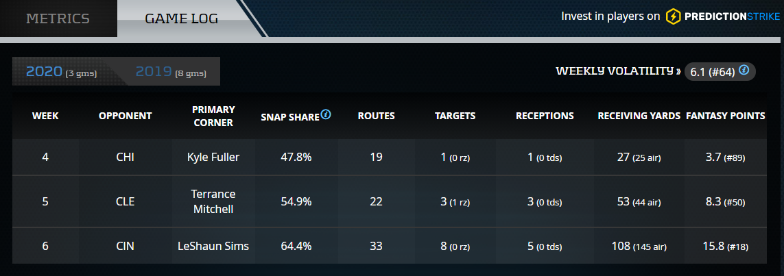 Based on the usage patterns from his NFL debut in Week 4, we suggested stashing Peoples-Jones in dynasty leagues. Given that Oakland, Cleveland’s Week 8 opponent, has allowed 77 points and six passing scores over the last two weeks, we give you permission to start him if needed.