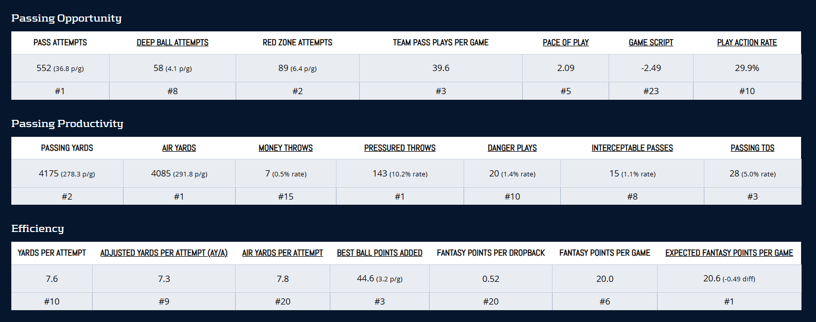 Dak Prescott‘s Opportunity, Productivity, and Efficiency Metrics