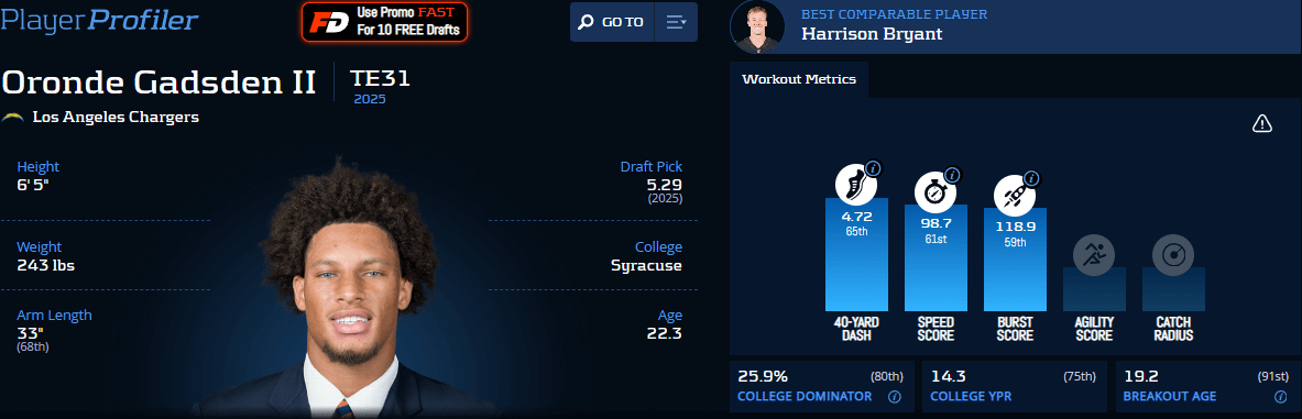 Oronde Gadsden II Advanced Stats & Metrics Profile