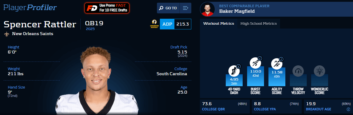 PlayerProfiler is home to award-winning dynasty rankings and tools. Our Dynasty Deluxe package includes complete Dynasty Rankings, Rookie Rankings, Trade Analyzer, Draft Planner, Mock Drafts, and more. Check it out.