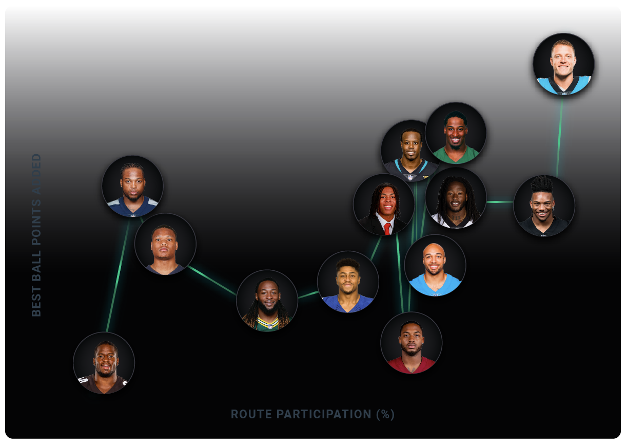 300+ metric categories at your fingertips to build reports that tell the statistical story at every position: QB, RB, WR, TE, OL, as well as EDGE, DT, LB, CB. Everything is here to apply high-level analysis to player performances for Standard, Superflex, and IDP leagues.