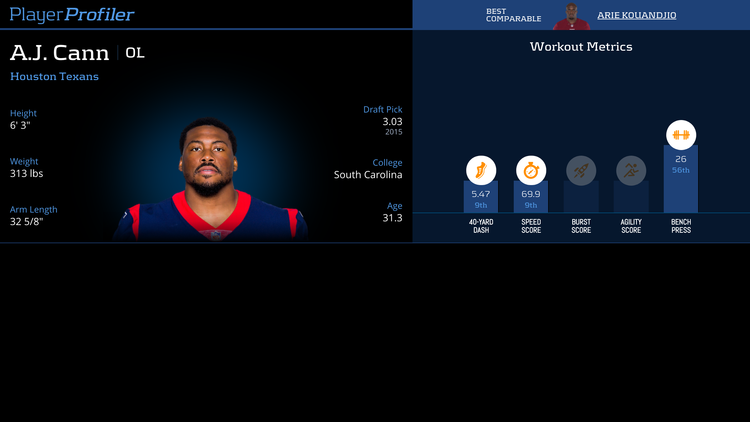 Download all A.J. Cann advanced stats and metrics with Data Analysis.