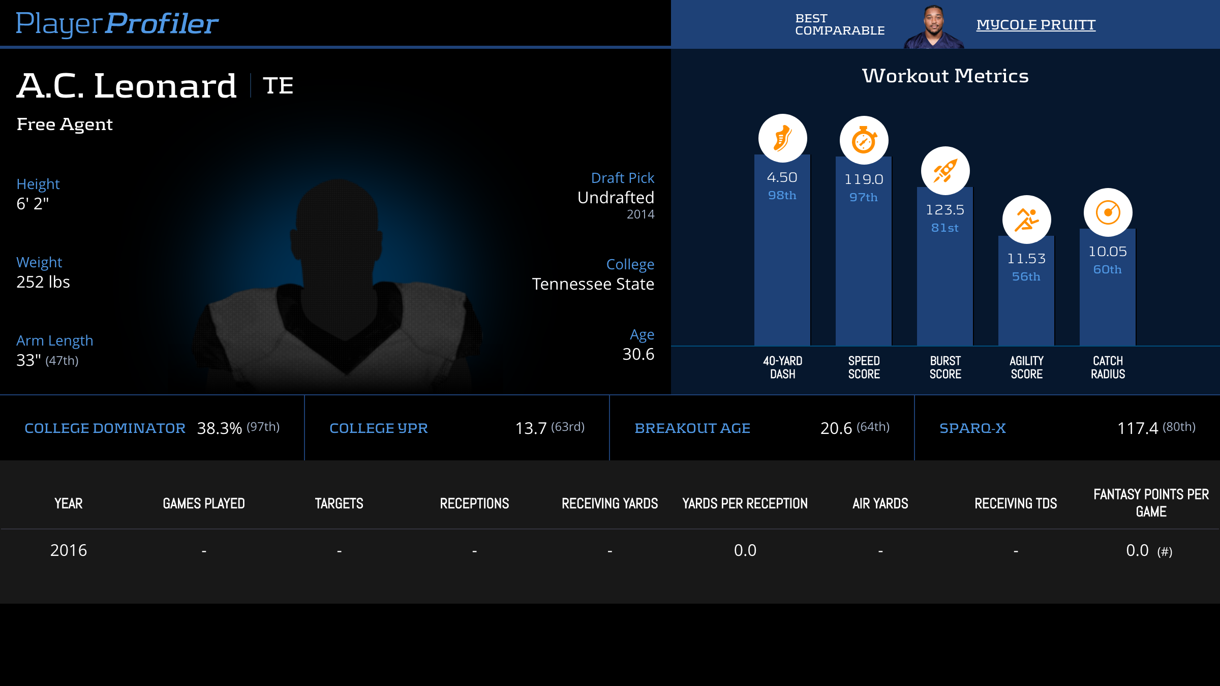 | Year Year | Games Games | Receptions Recs | Receiving Yards Rec Yds | Target Share Tgt Share | Catch Rate Catch Rate | Receiving Touchdowns Rec TDs | Special Teams Yards Special Teams | Age Age | School School |