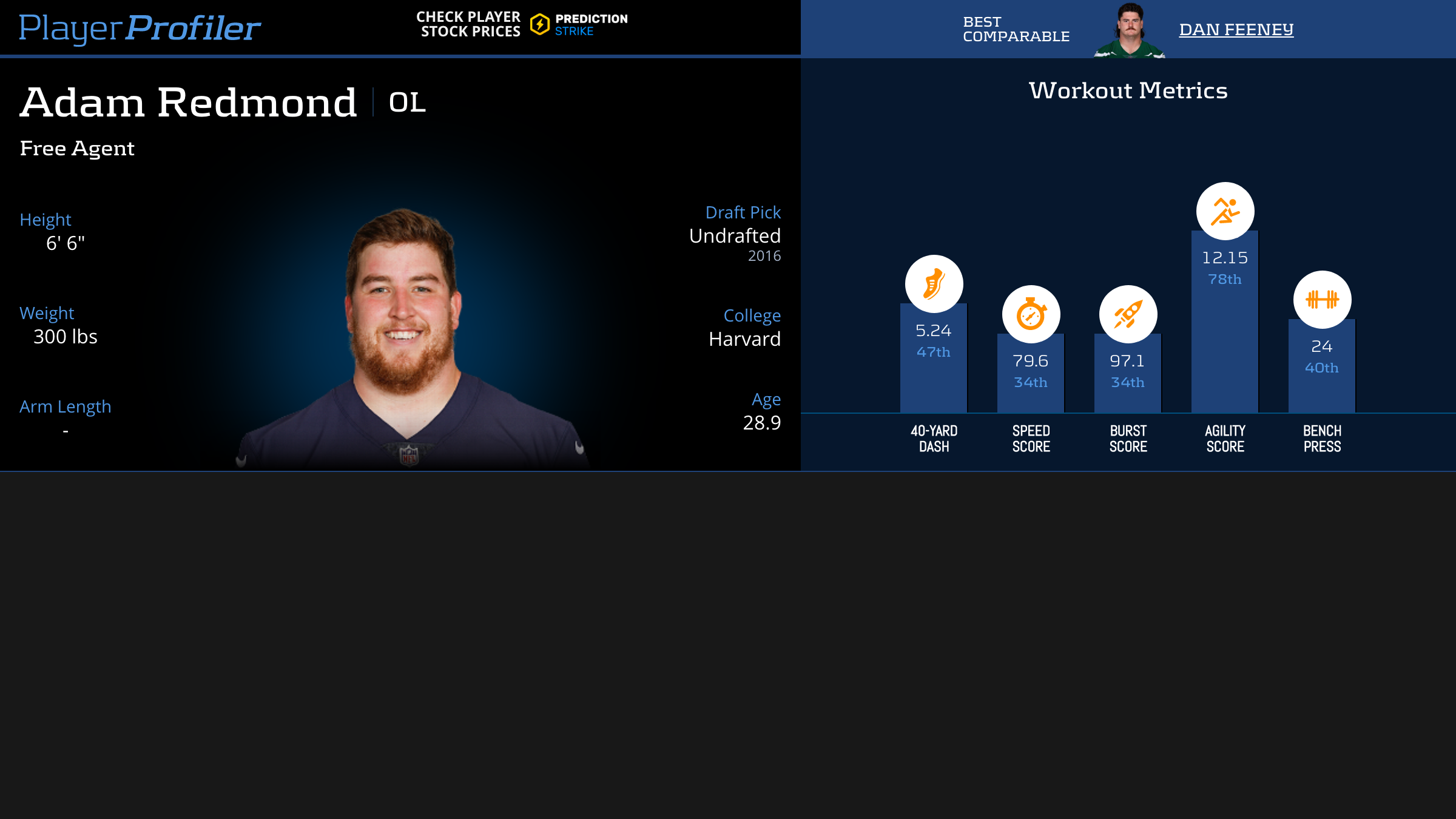 Download all Adam Redmond advanced stats and metrics with Data Analysis.