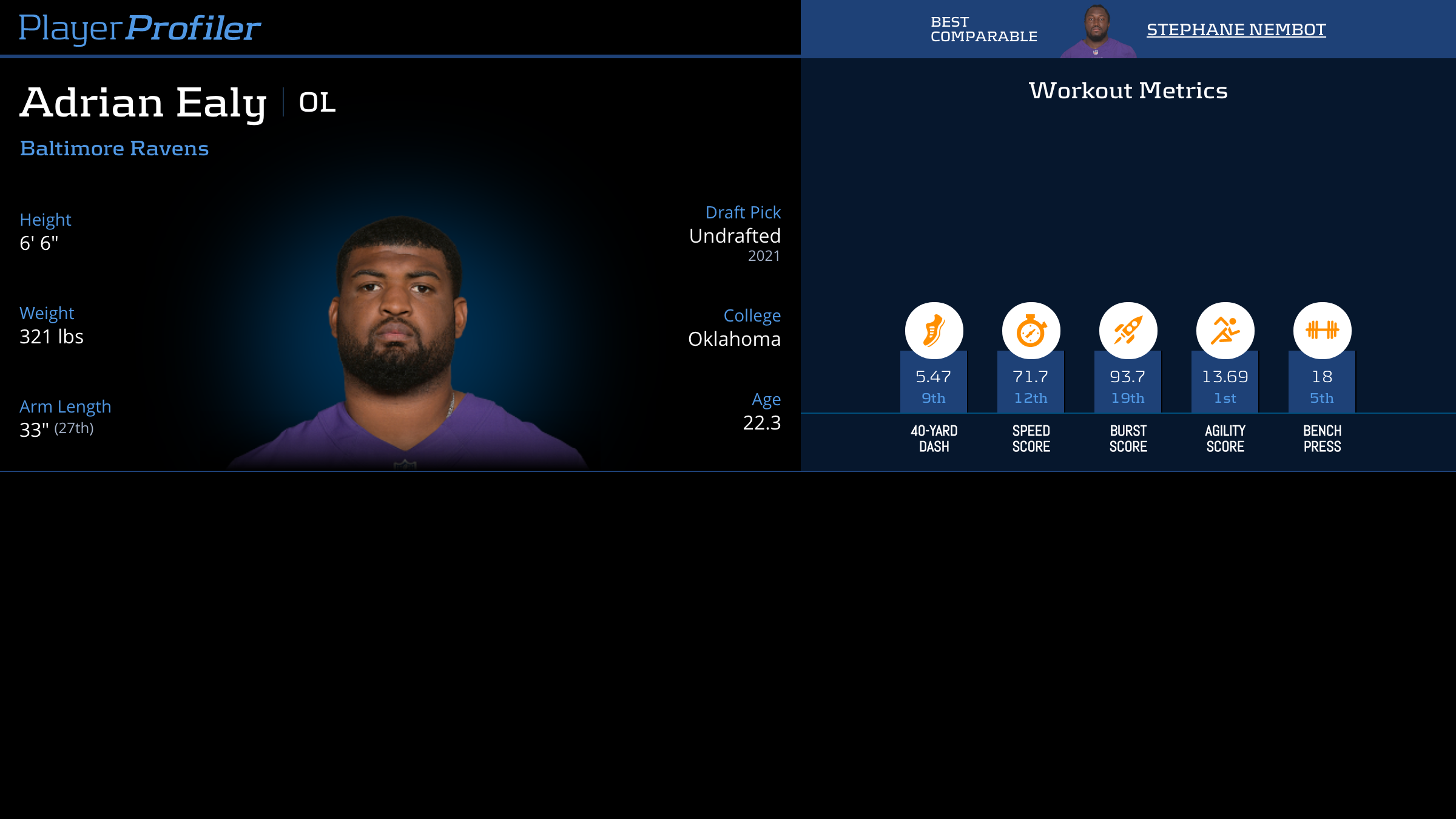 Download all Adrian Ealy advanced stats and metrics with Data Analysis.