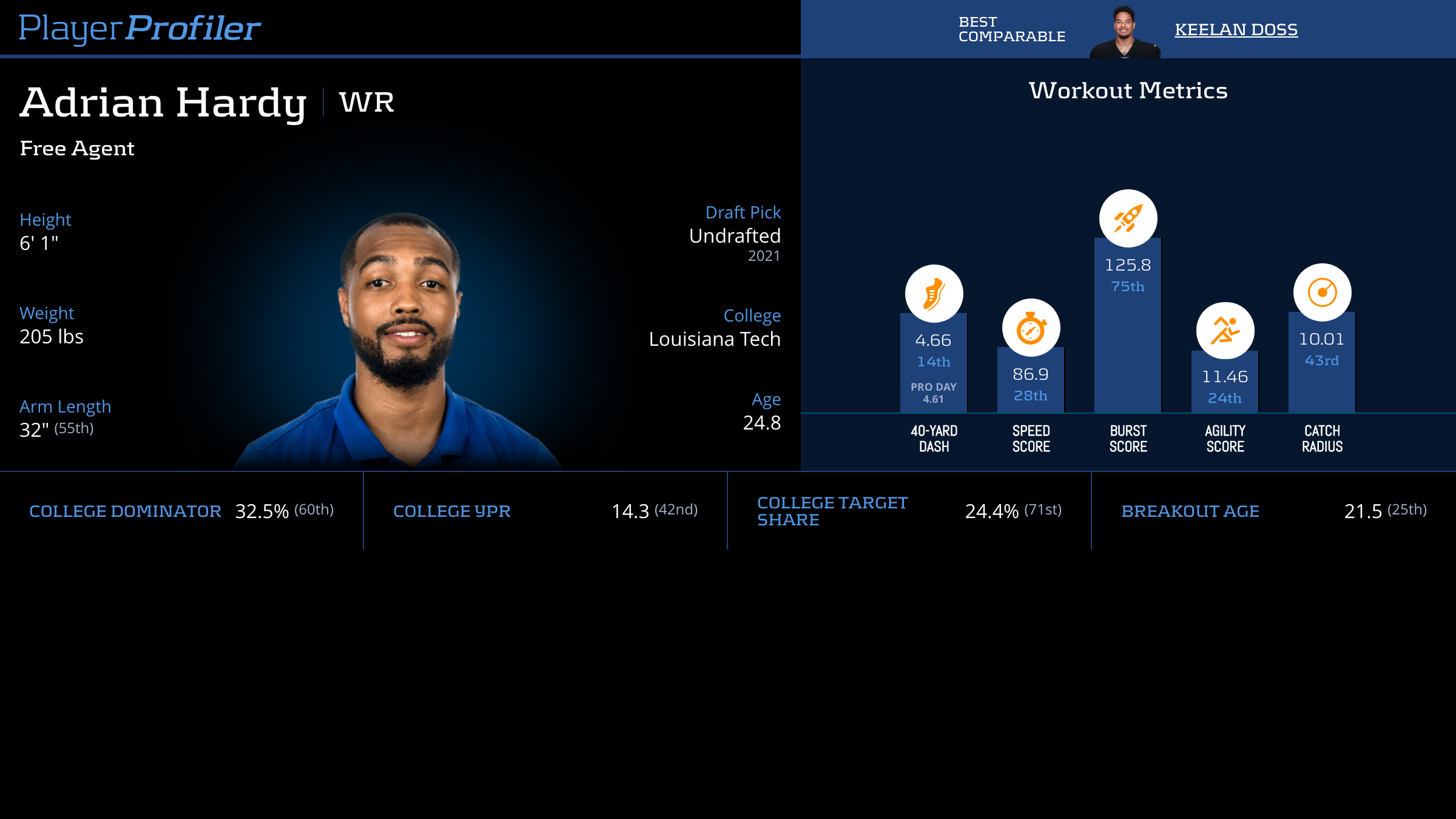 | Year Year | Games Games | Receptions Recs | Receiving Yards Rec Yds | Target Share Tgt Share | Catch Rate Catch Rate | Receiving Touchdowns Rec TDs | Special Teams Yards Special Teams | Age Age | School School |