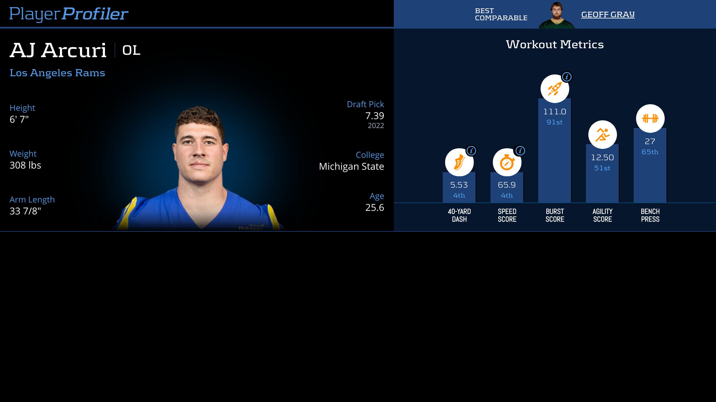 Download all A.J. Arcuri advanced stats and metrics with Data Analysis.