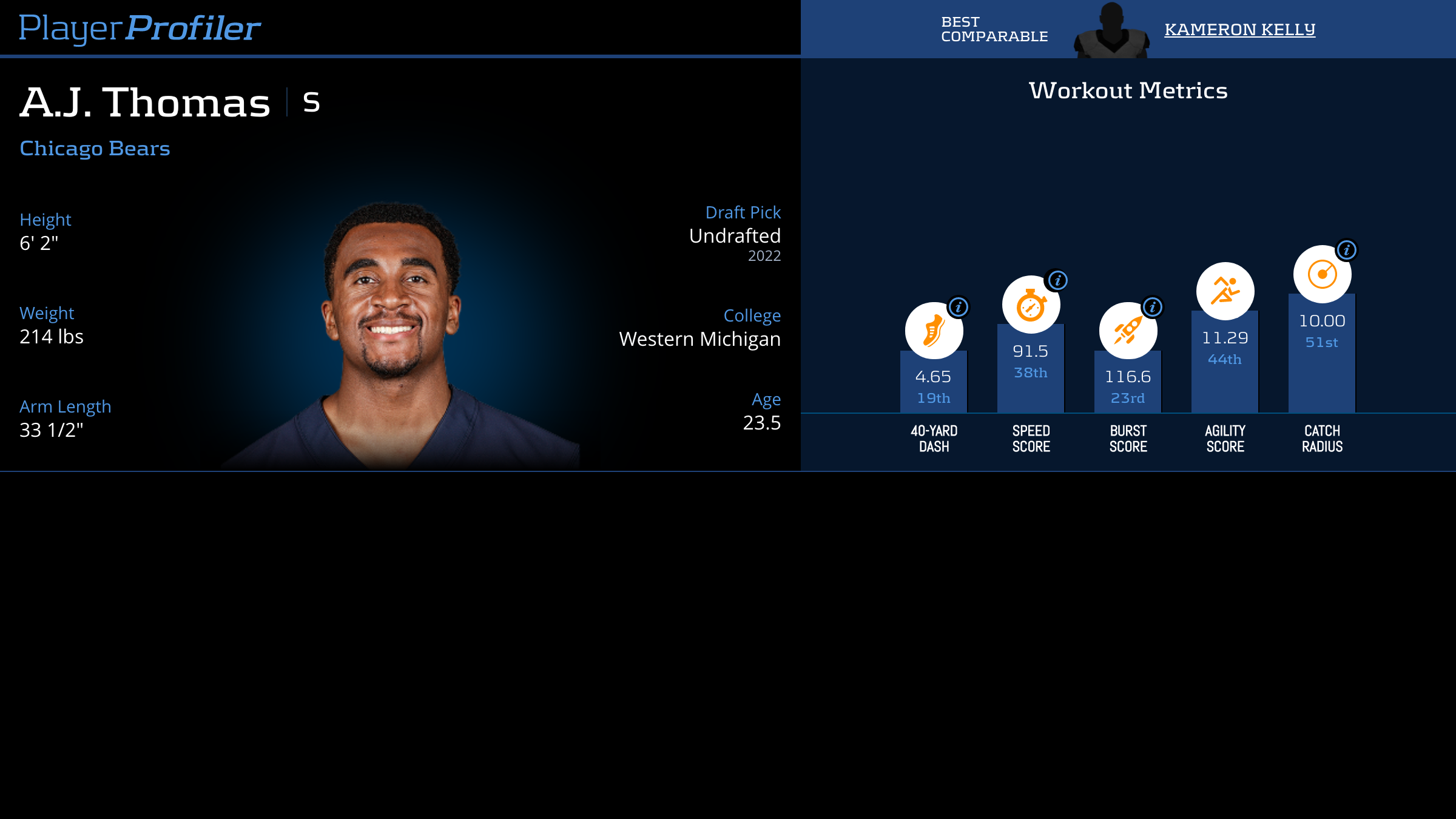 Download all A.J. Thomas advanced stats and metrics with Data Analysis.