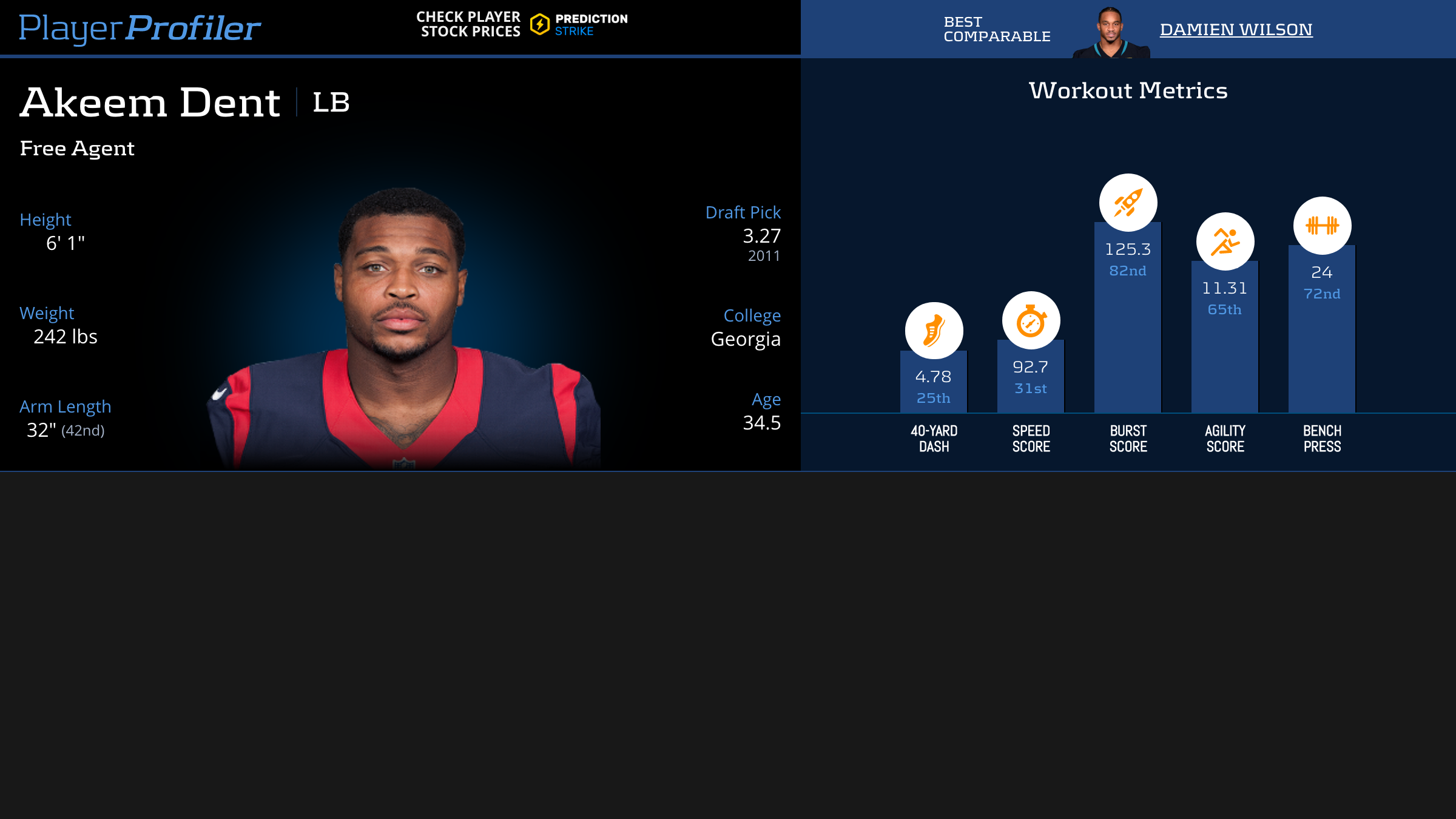 Download all Akeem Dent advanced stats and metrics