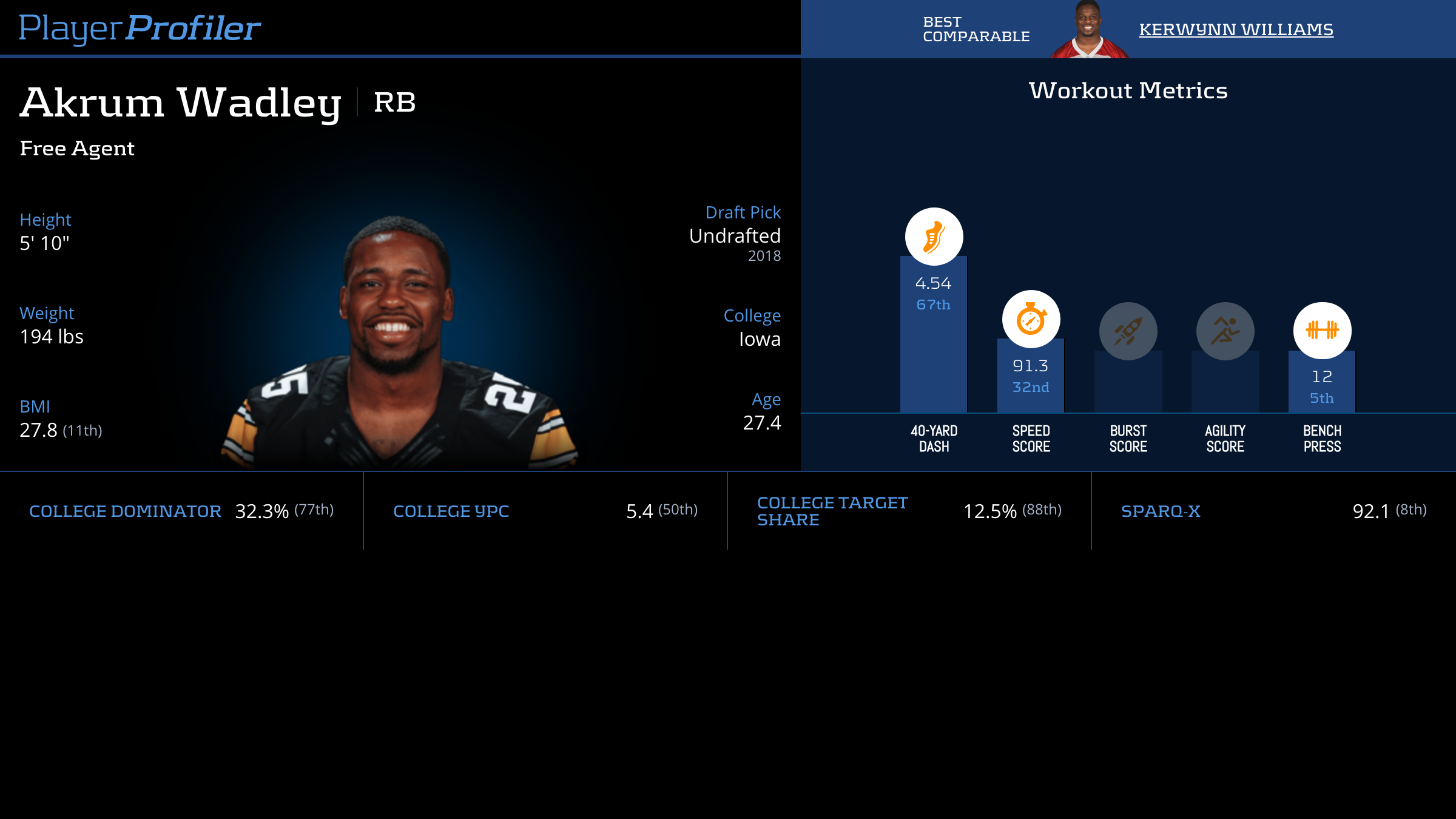 | Year Year | Games Games | Rush Attempts Rush Atts | Rushing Yards Rush Yrds | Total Touchdowns TDs | Receptions Rec | Receiving Yards Rec Yrds | Target Share Tgt Share | Age Age | School School |