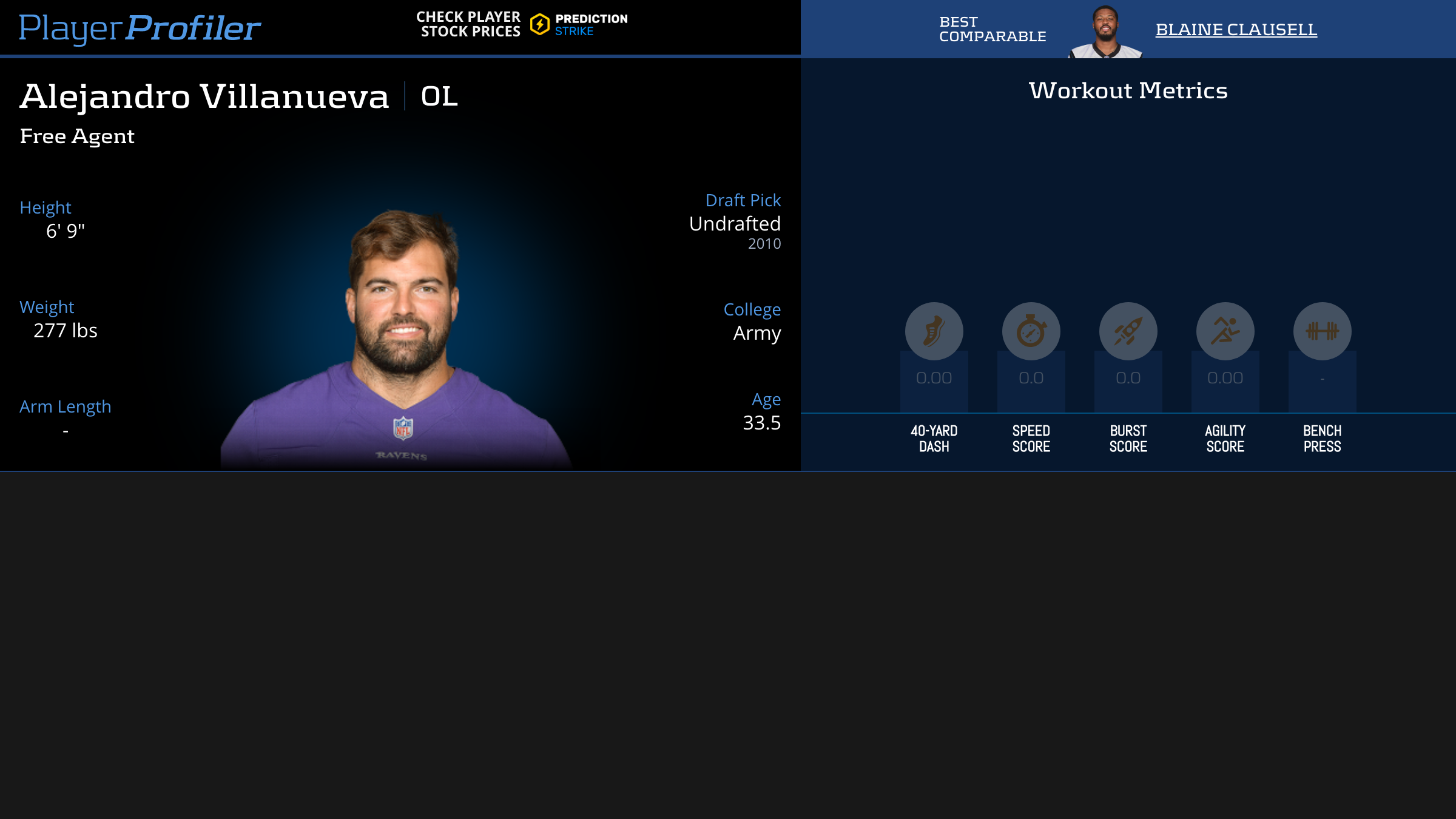 Download all Alejandro Villanueva advanced stats and metrics with Data Analysis.