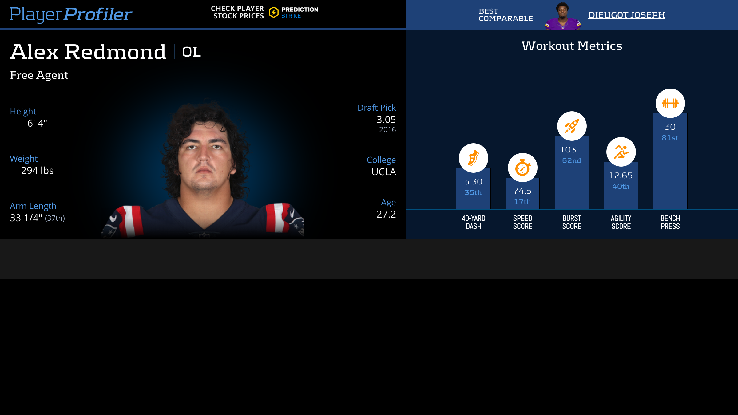 Download all Alex Redmond advanced stats and metrics with Data Analysis.