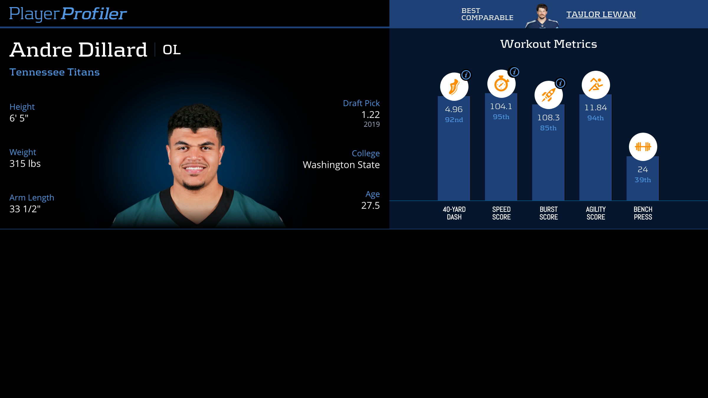 Download all Andre Dillard advanced stats and metrics with Data Analysis.