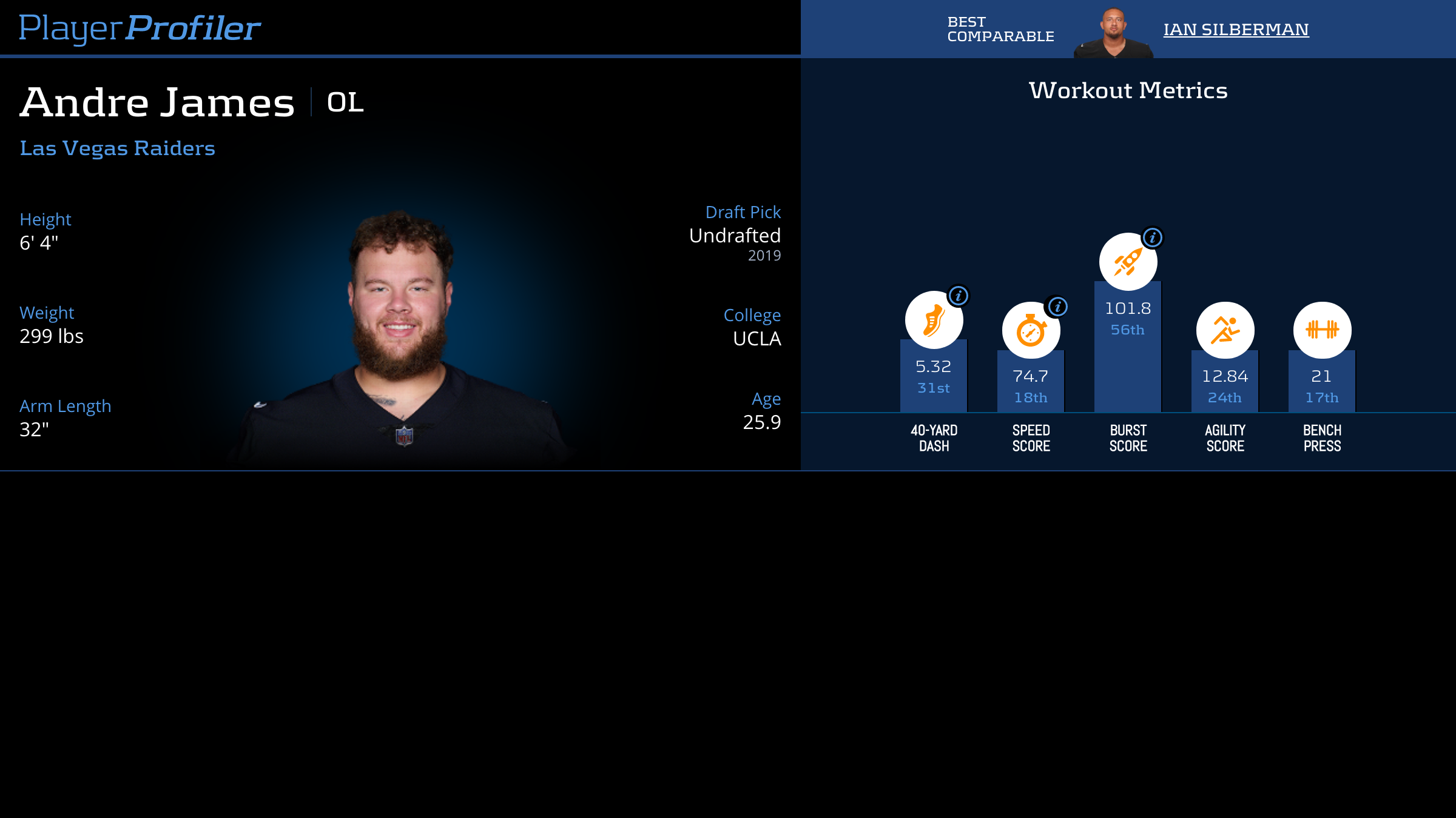 Download all Andre James advanced stats and metrics with Data Analysis.