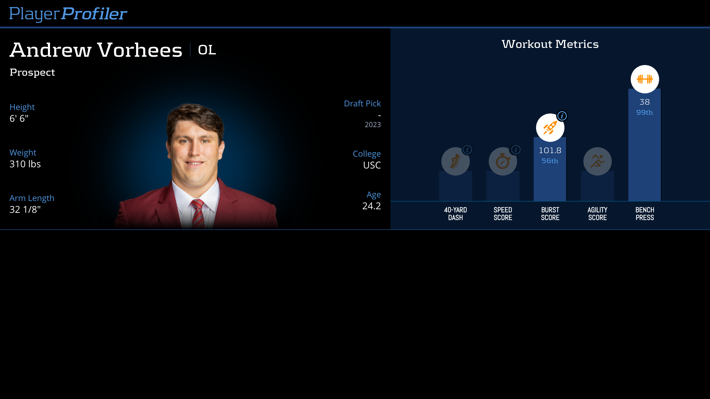 Download all Andrew Vorhees advanced stats and metrics with Data Analysis.