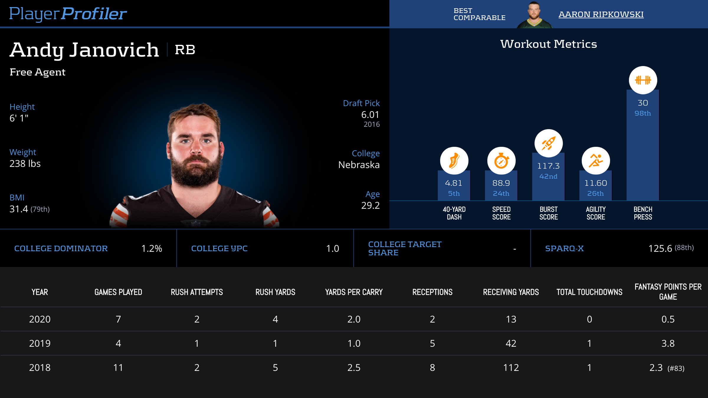 | 16 | NYJ | 12.7% | -- | -- | 1 | -- | -- | -- | 0.0 (#90) |