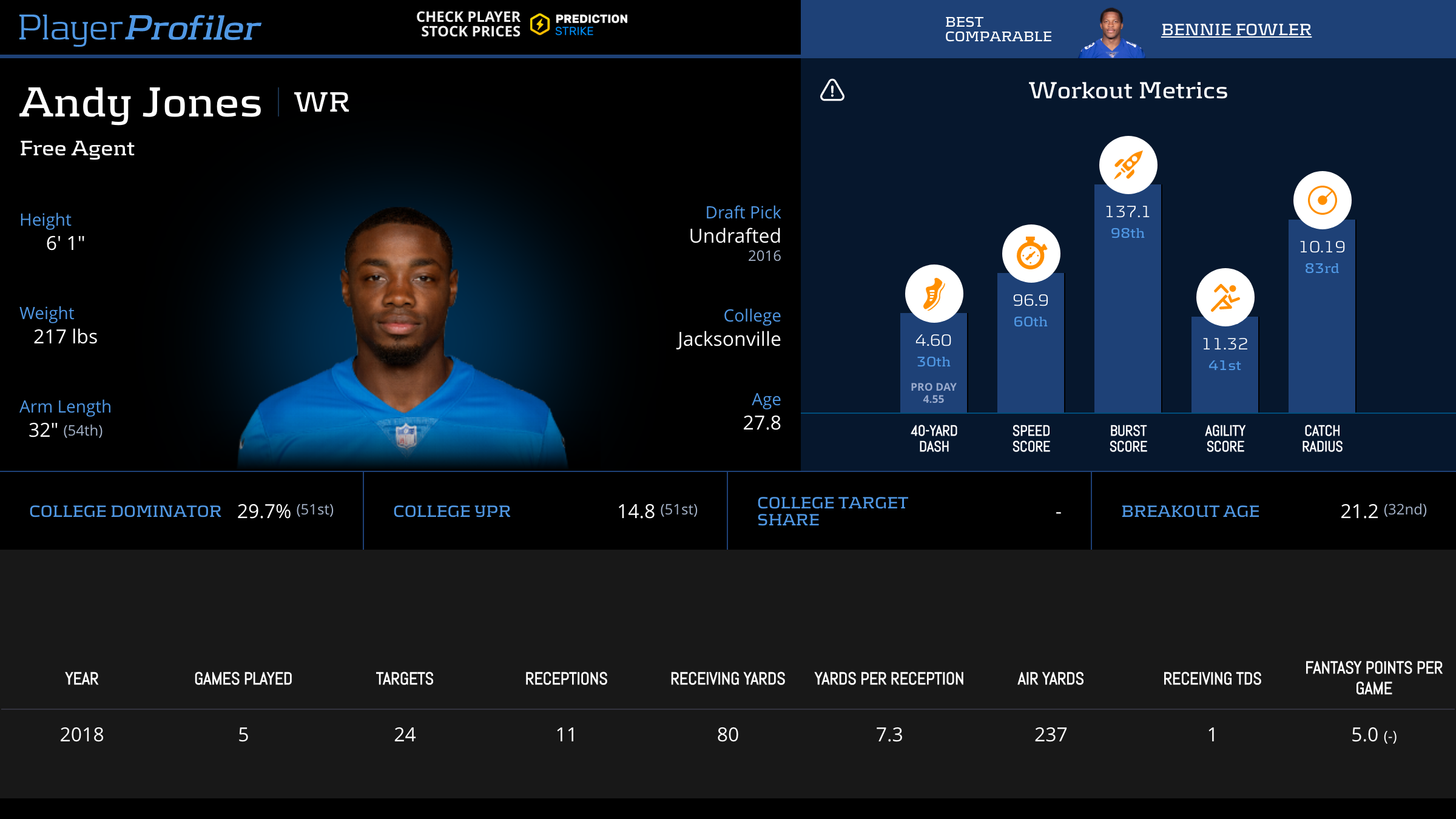 | Year Year | Games Games | Receptions Recs | Receiving Yards Rec Yds | Target Share Tgt Share | Catch Rate Catch Rate | Receiving Touchdowns Rec TDs | Special Teams Yards Special Teams | Age Age | School School |