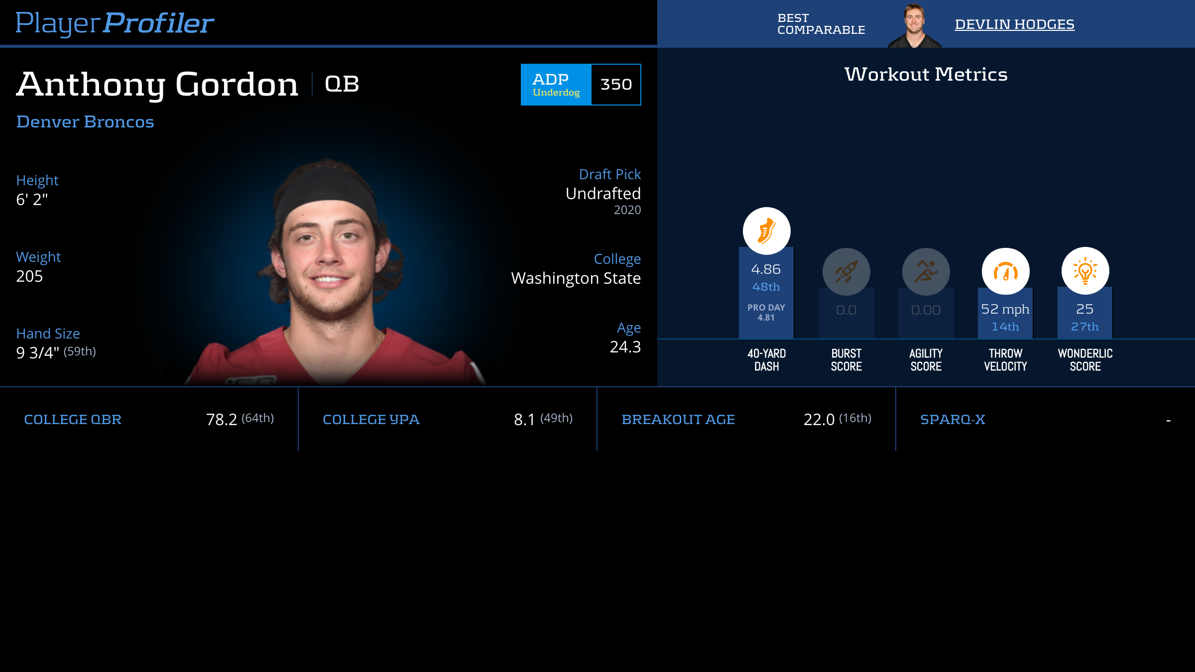 | Year Year | Games Games | Pass Attempts Pass Atts | Passing Yards Pass Yds | Yards Per Attempt YPA | Completion Percentage Comp % | Passing Touchdowns Pass TDs | Rushing Yards Rush Yds | Age Age | School School |