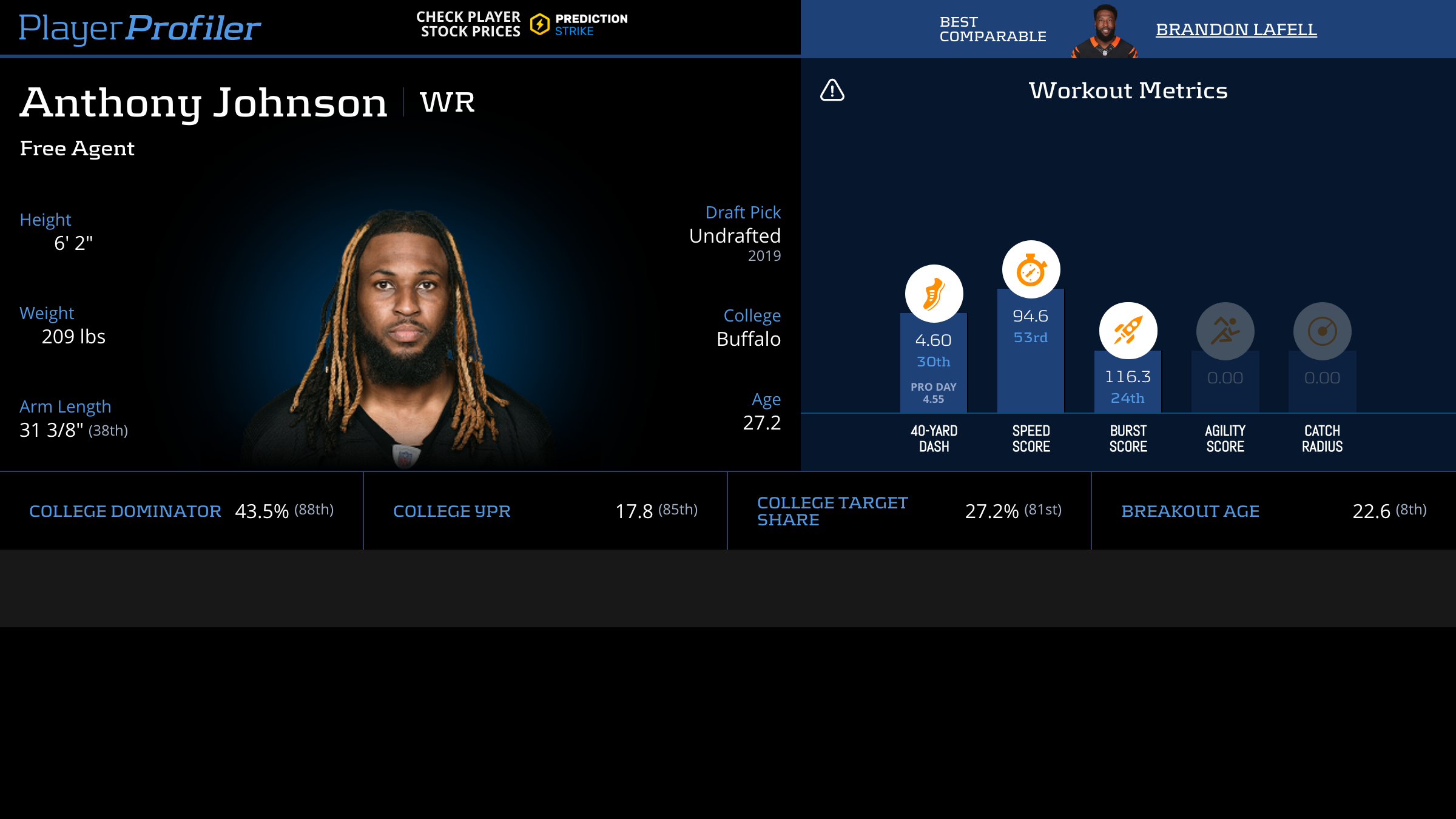 | Year Year | Games Games | Receptions Recs | Receiving Yards Rec Yds | Target Share Tgt Share | Catch Rate Catch Rate | Receiving Touchdowns Rec TDs | Special Teams Yards Special Teams | Age Age | School School |
