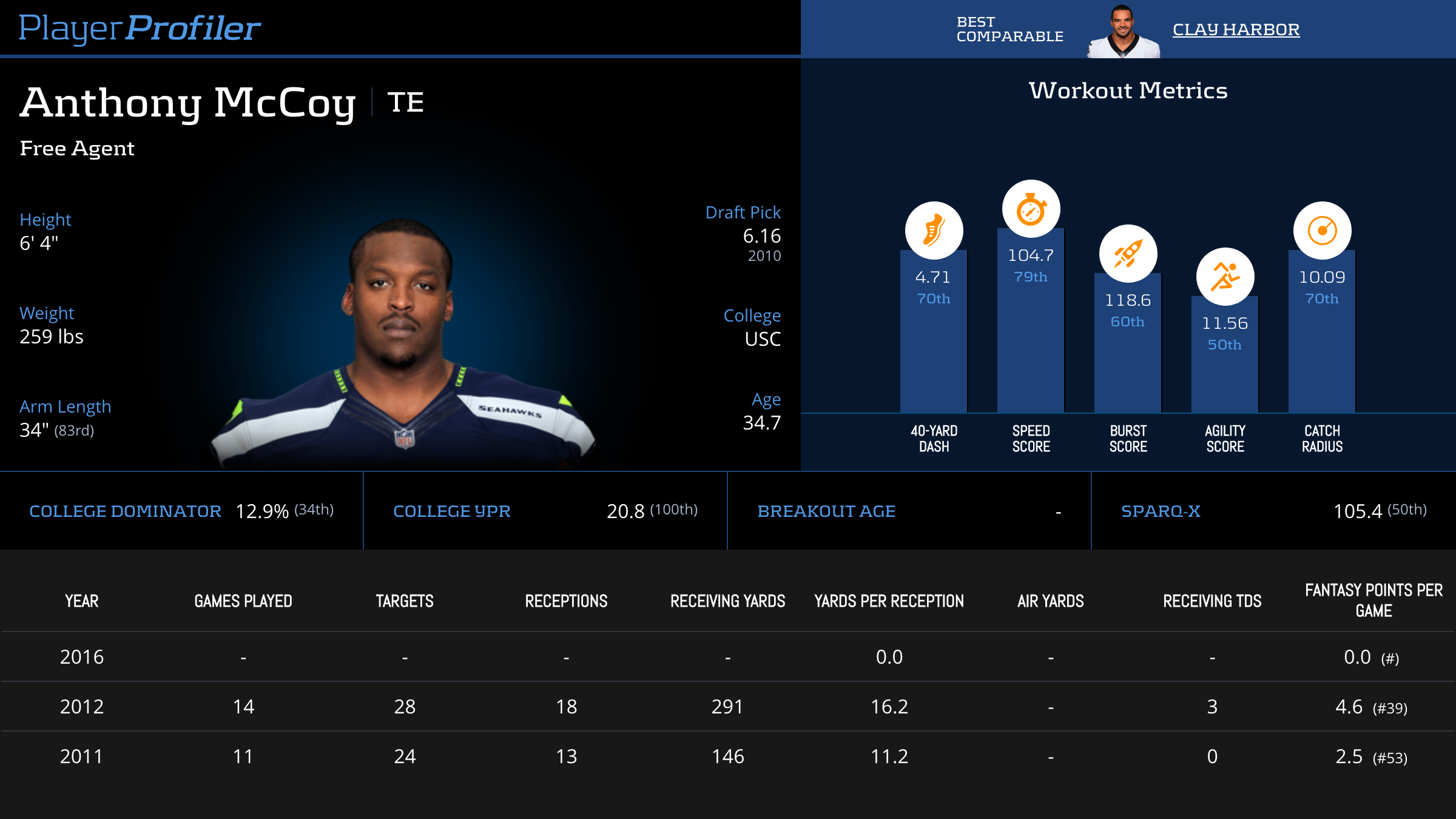 | 7 | SF | 0.0% | -- | 1 | -- | -- | 0.0 (#37) |