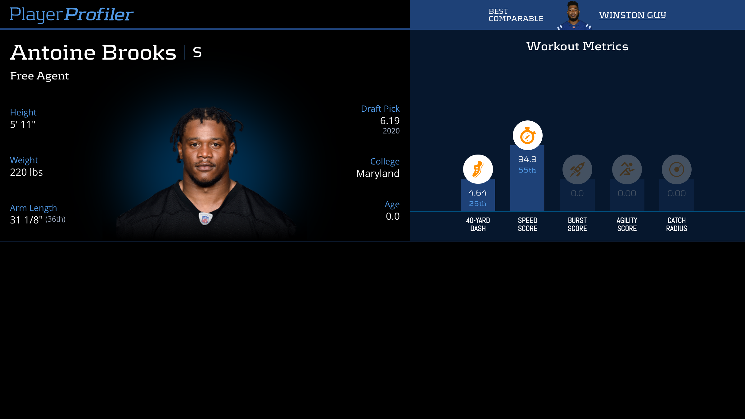 Download all Antoine Brooks advanced stats and metrics with Data Analysis.