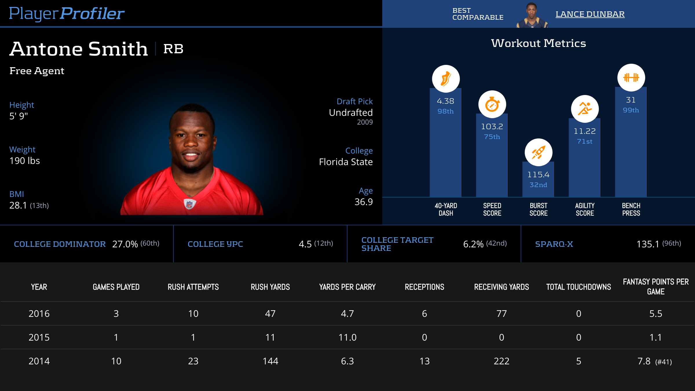 | 7 | SF | 11.3% | 1 | -- | 3 tgts | 2 | 47 | -- | 6.7 (##40) |