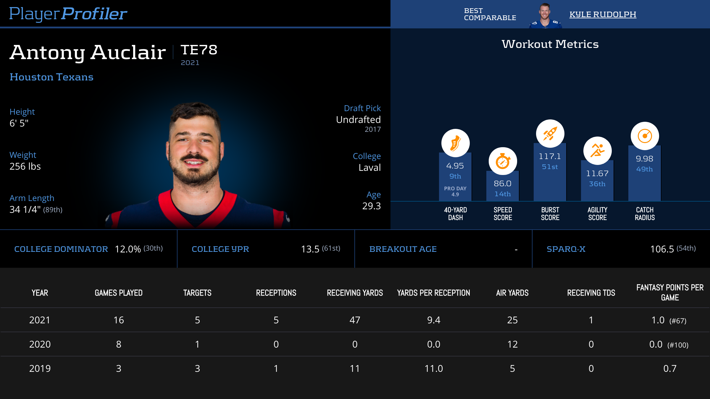 | Year Year | Games Games | Receptions Recs | Receiving Yards Rec Yds | Target Share Tgt Share | Catch Rate Catch Rate | Receiving Touchdowns Rec TDs | Special Teams Yards Special Teams | Age Age | School School |