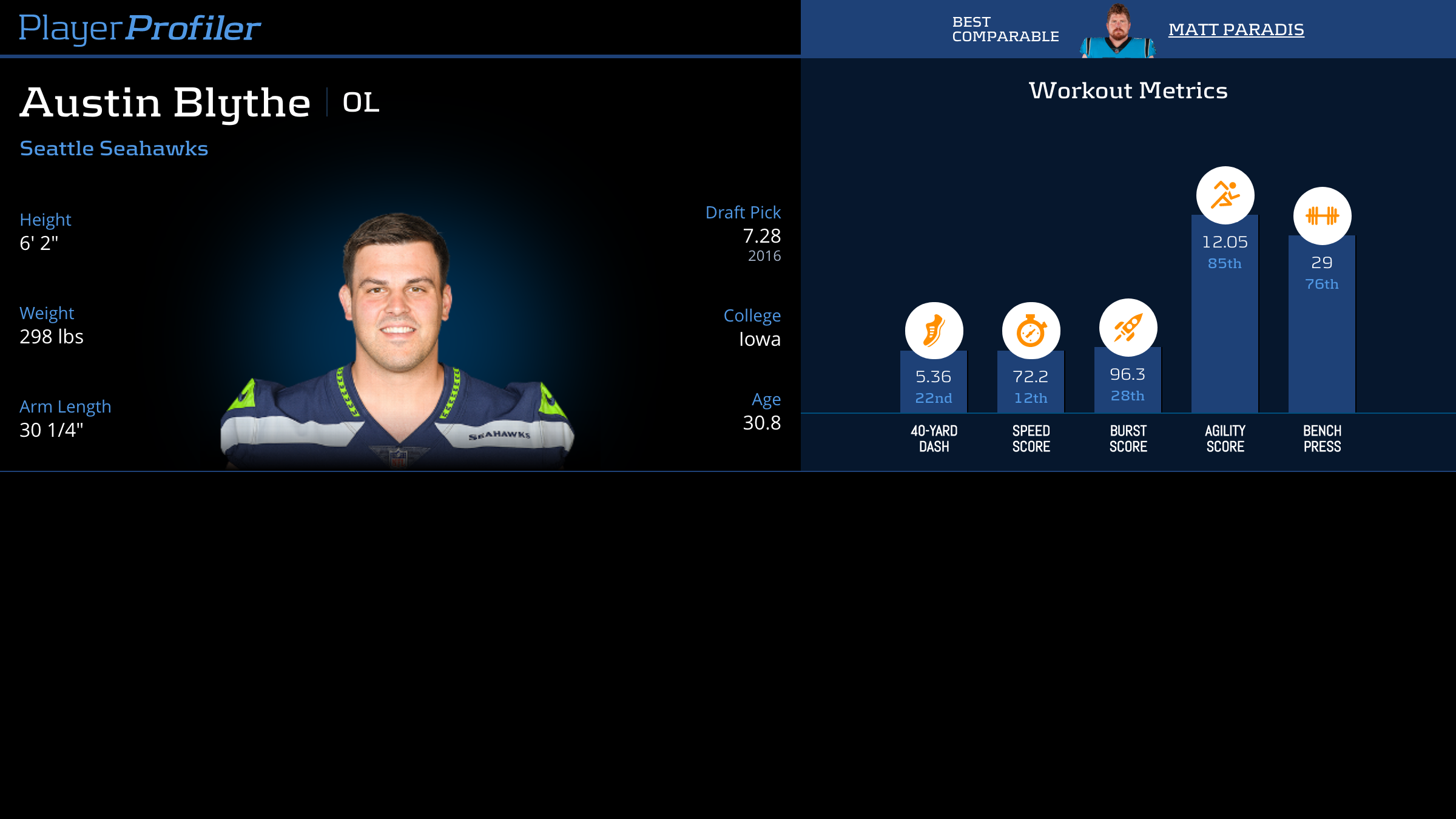 Download all Austin Blythe advanced stats and metrics with Data Analysis.