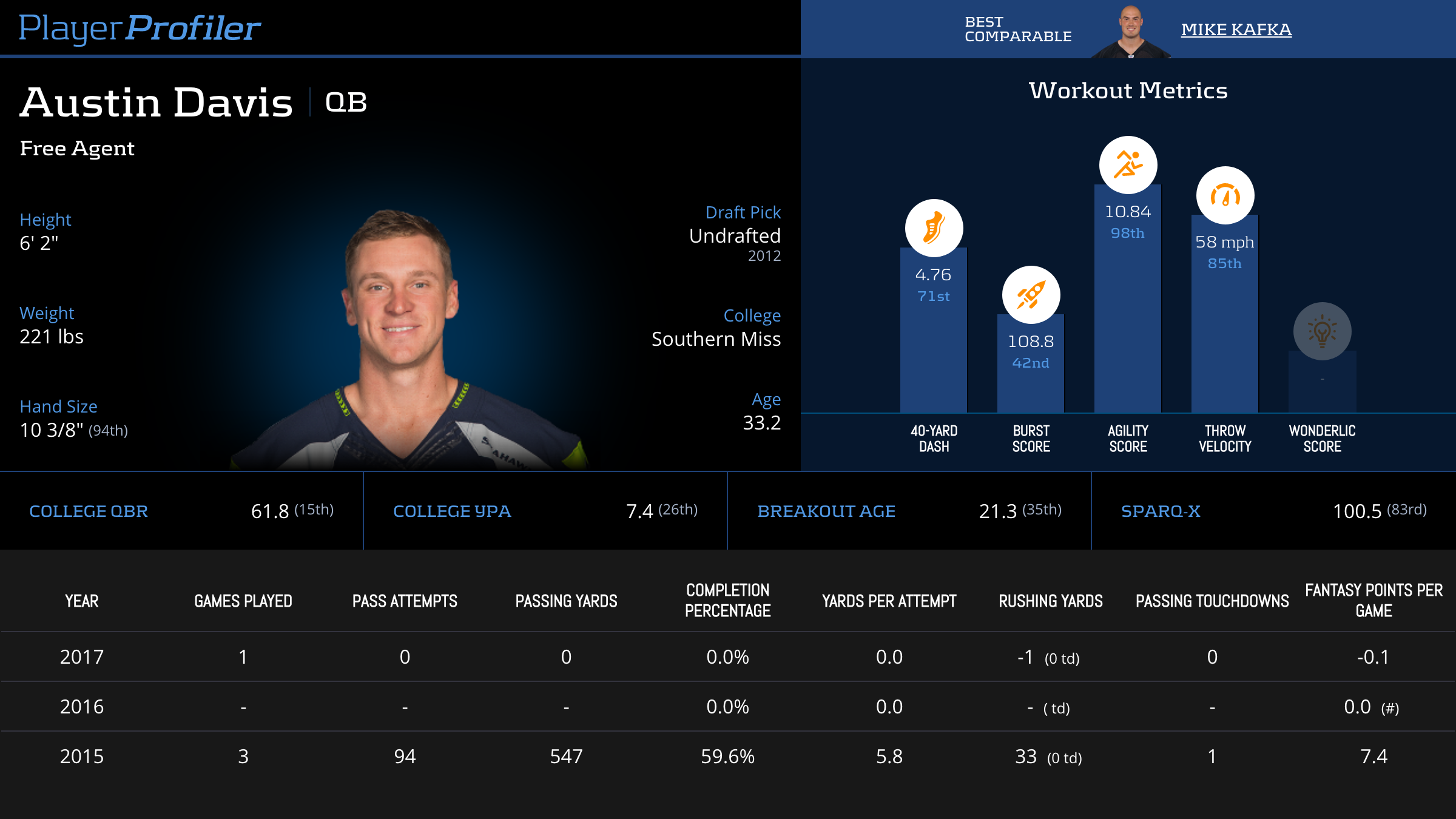 | Year Year | Games Games | Pass Attempts Pass Atts | Passing Yards Pass Yds | Yards Per Attempt YPA | Completion Percentage Comp % | Passing Touchdowns Pass TDs | Rushing Yards Rush Yds | Age Age | School School |