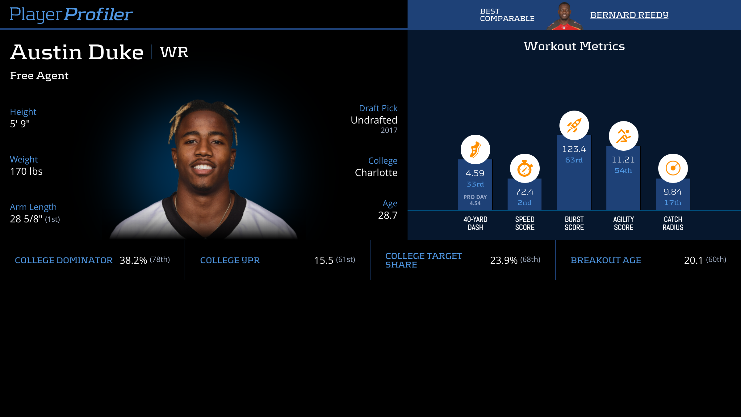 | Year Year | Games Games | Receptions Recs | Receiving Yards Rec Yds | Target Share Tgt Share | Catch Rate Catch Rate | Receiving Touchdowns Rec TDs | Special Teams Yards Special Teams | Age Age | School School |