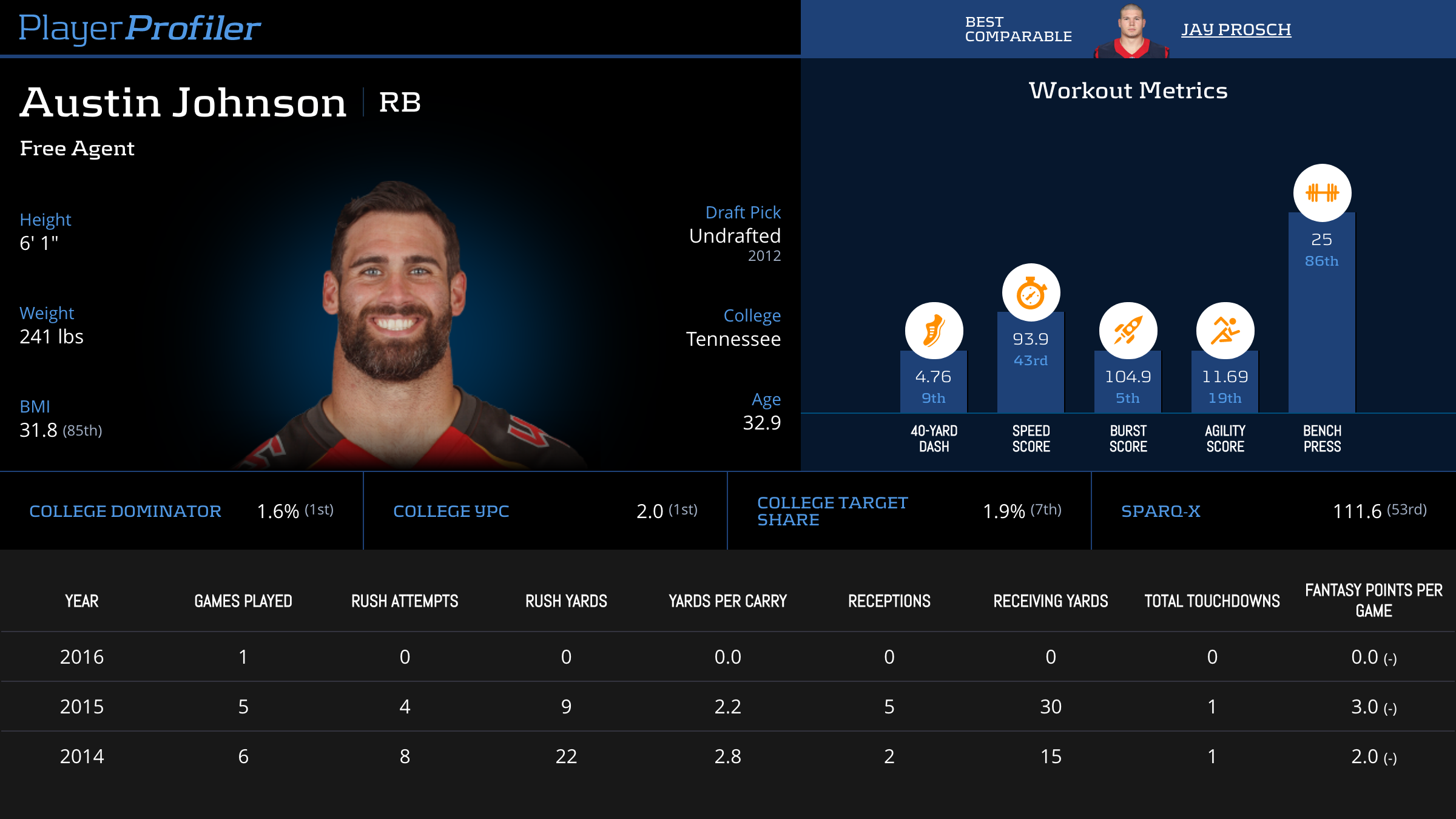 Box score statistics such as targets, yards, touchdowns, and fantasy points per target are updated the next day. Advanced stats and metrics are updated later in the week during the NFL season.