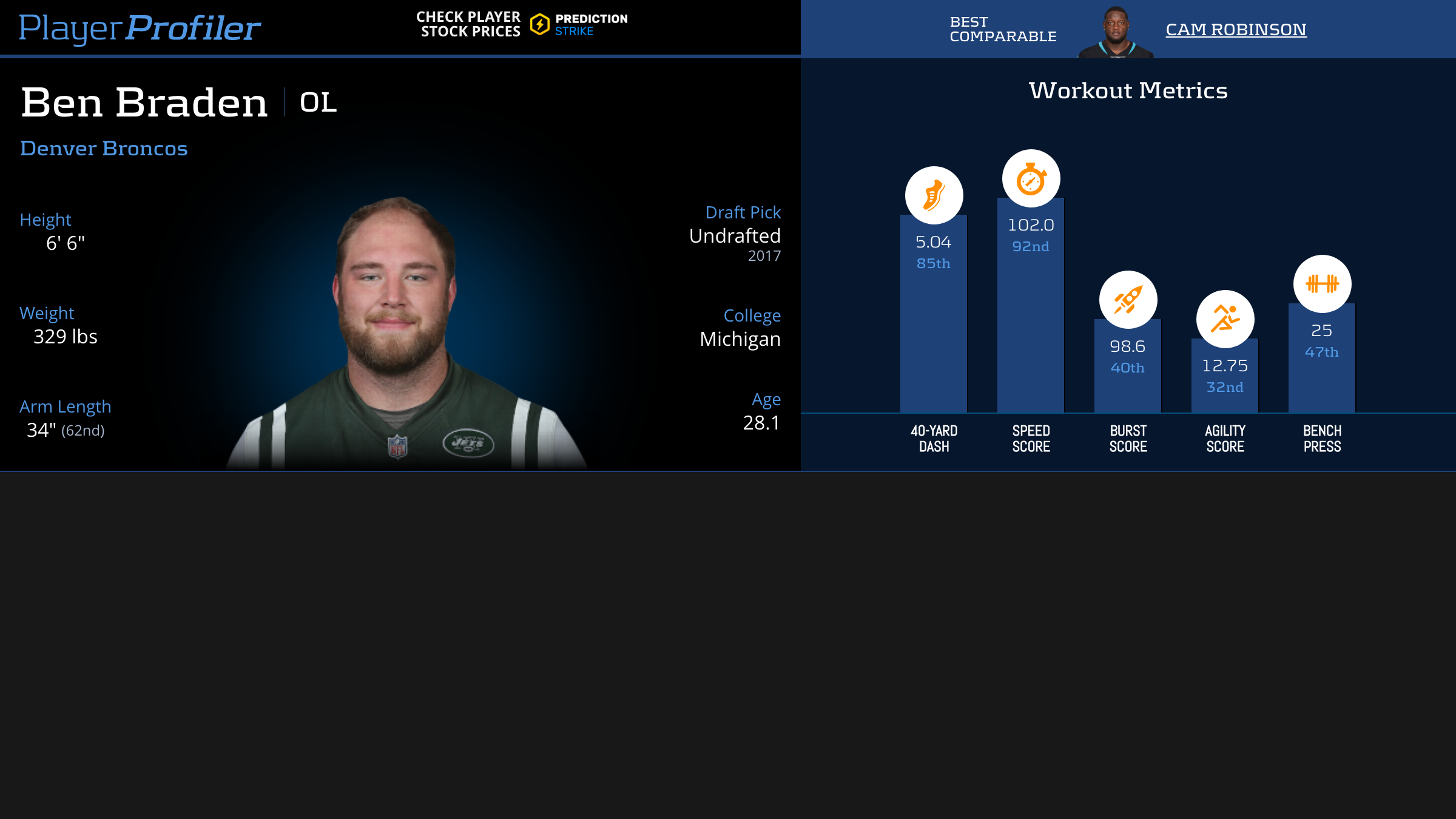 Download all Ben Braden advanced stats and metrics with Data Analysis.
