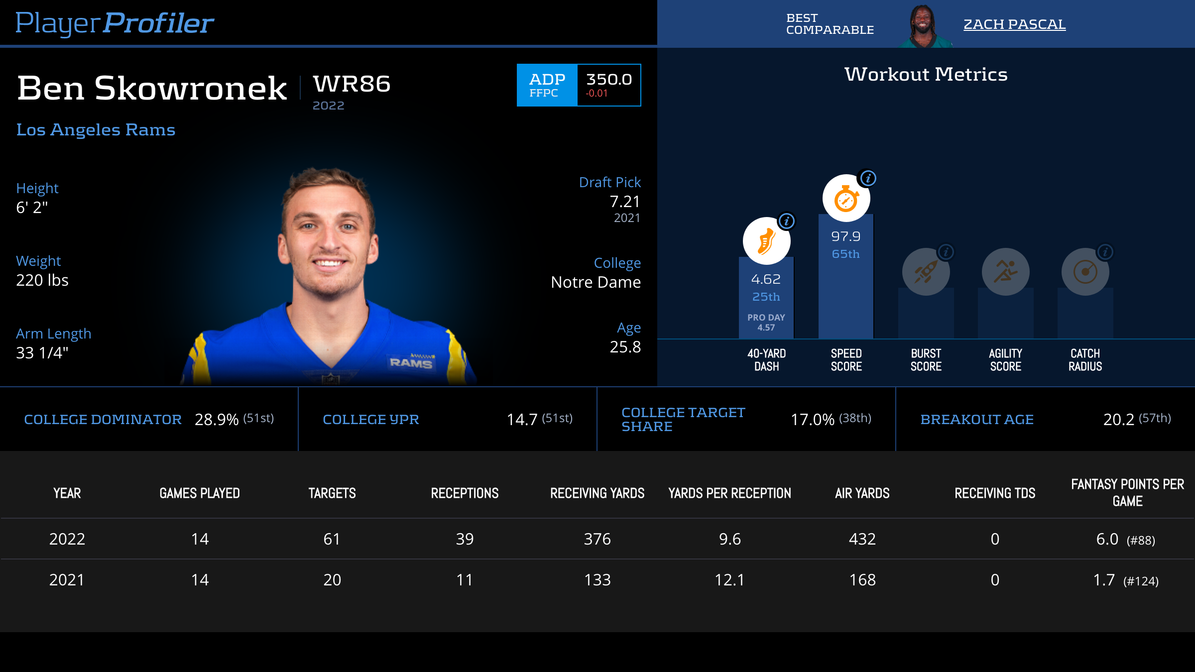 | 13 | BUF | Cam Lewis | 9.3% | 1 (4.0% rate) | 1 | -- | 0 (4 air) | 0.0 (#107) |