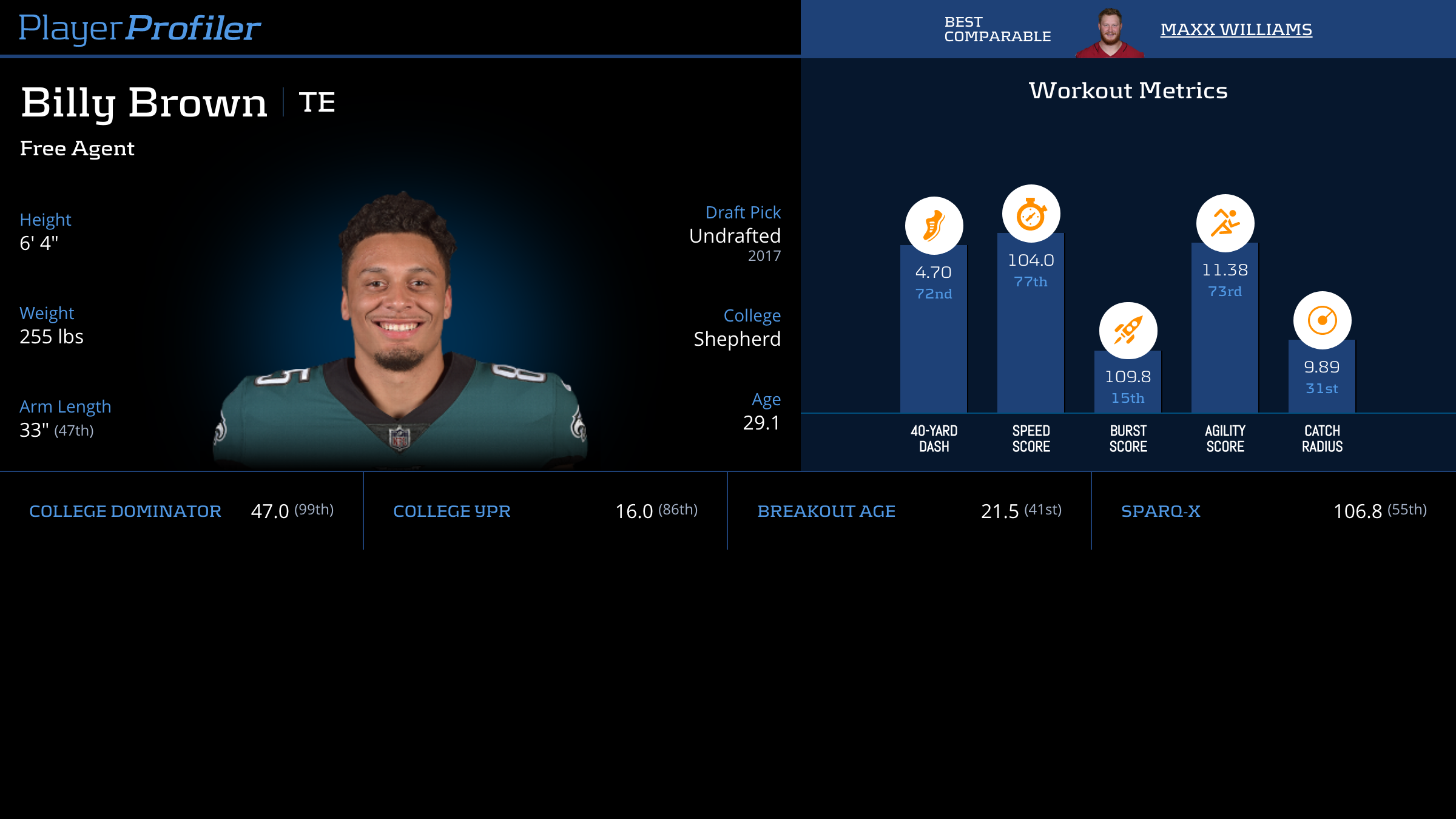 | Year Year | Games Games | Receptions Recs | Receiving Yards Rec Yds | Target Share Tgt Share | Catch Rate Catch Rate | Receiving Touchdowns Rec TDs | Special Teams Yards Special Teams | Age Age | School School |