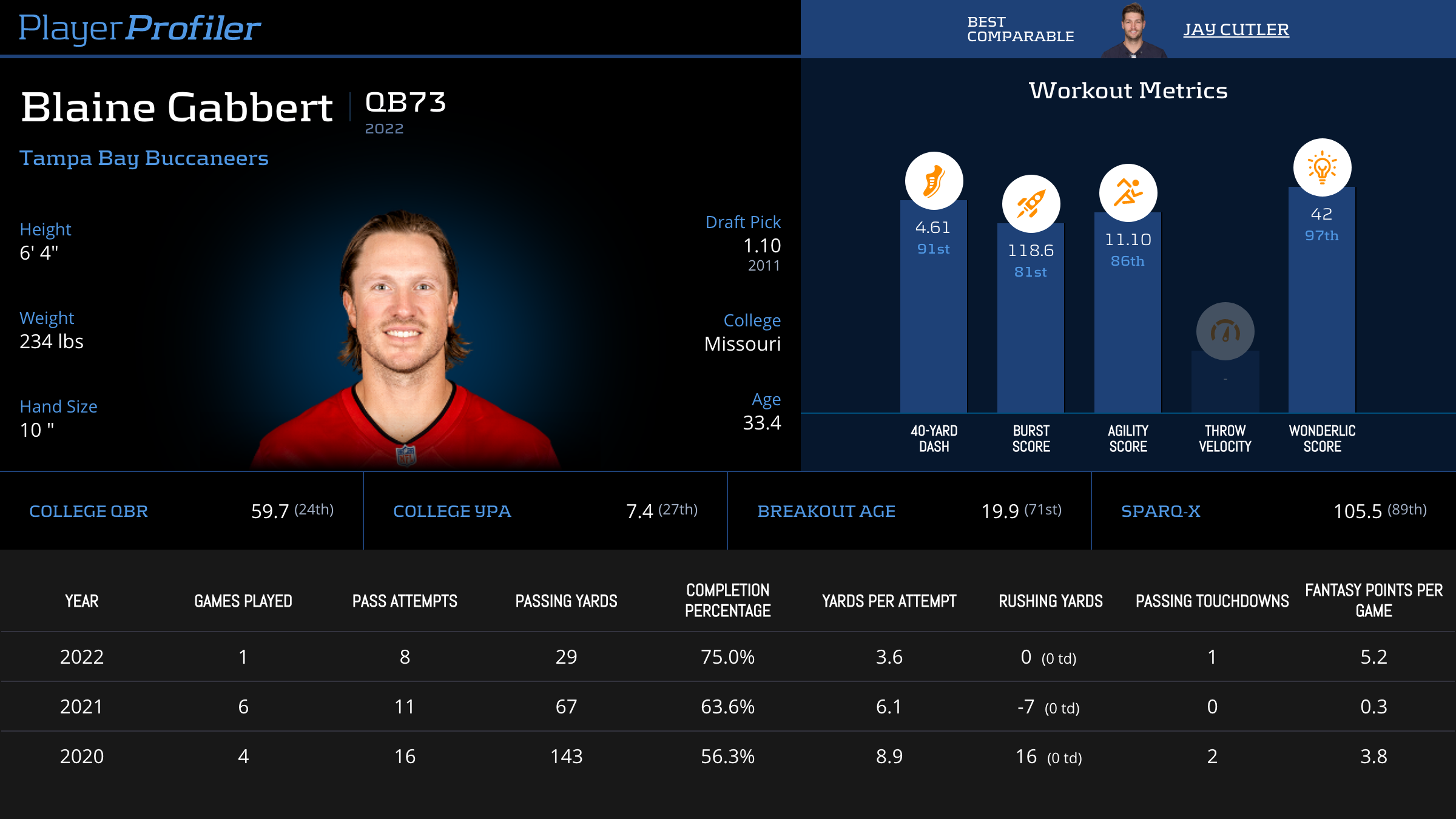 | 3 | CHI | 5 | 60.0% | 31 (31 air) | 6.2 | 0 (2 int) | -1 | -- | -0.9 (#42) |