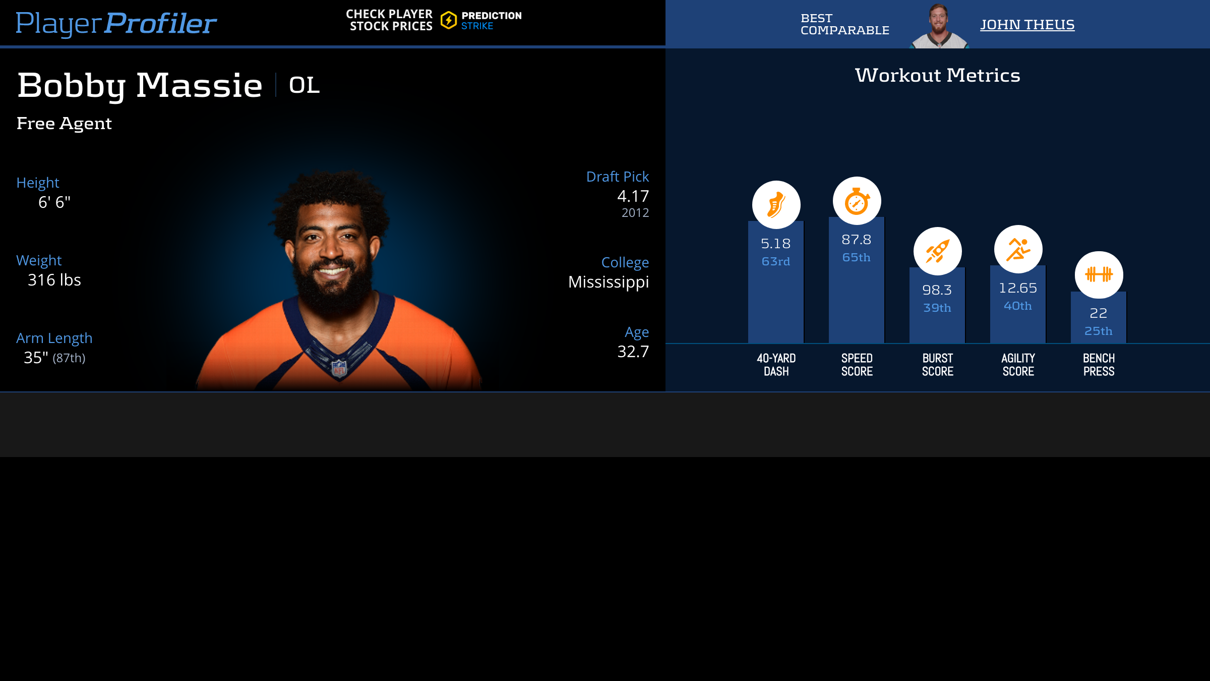 Download all Bobby Massie advanced stats and metrics with Data Analysis.