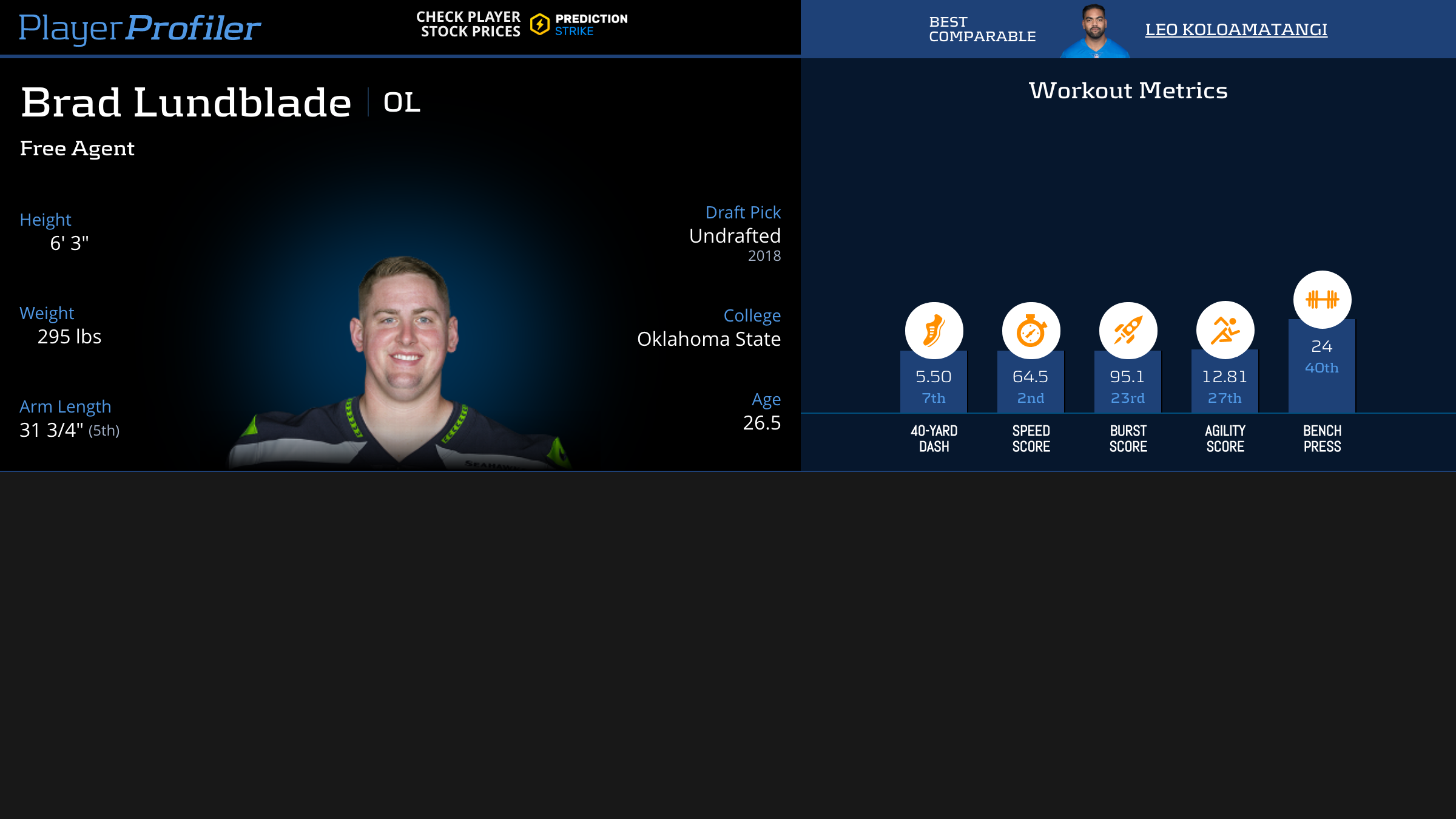 Download all Brad Lundblade advanced stats and metrics with Data Analysis.