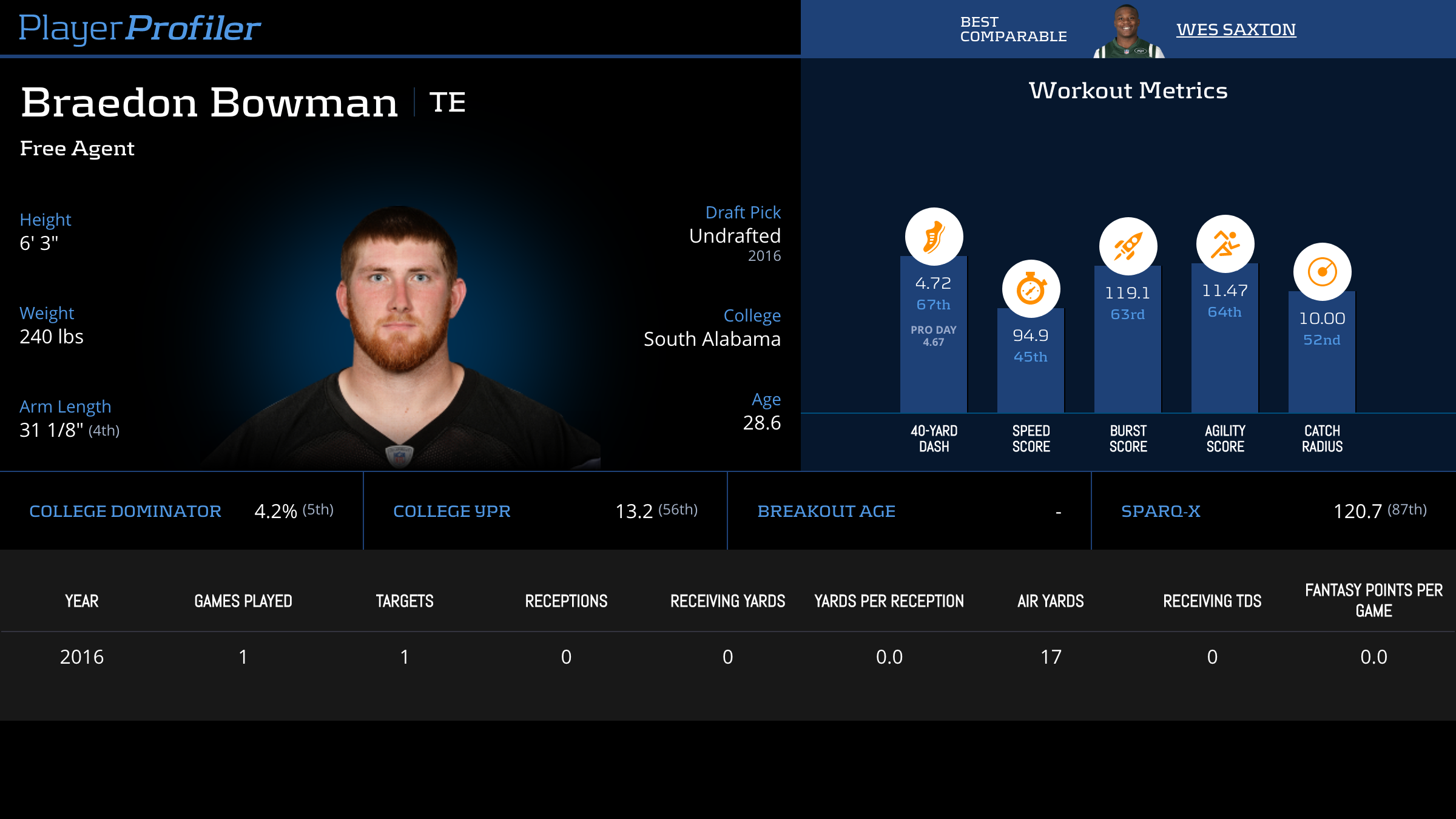 | Year Year | Games Games | Receptions Recs | Receiving Yards Rec Yds | Target Share Tgt Share | Catch Rate Catch Rate | Receiving Touchdowns Rec TDs | Special Teams Yards Special Teams | Age Age | School School |